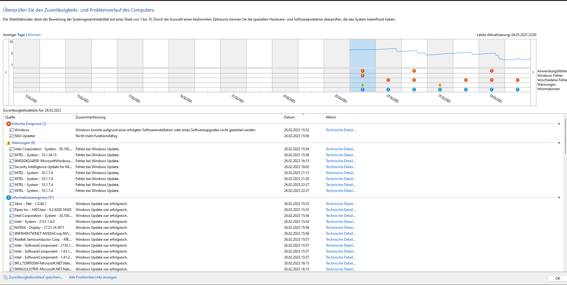 um Software/Treiber /Tools -Probleme auch soweit auszuschließen je nachdem.