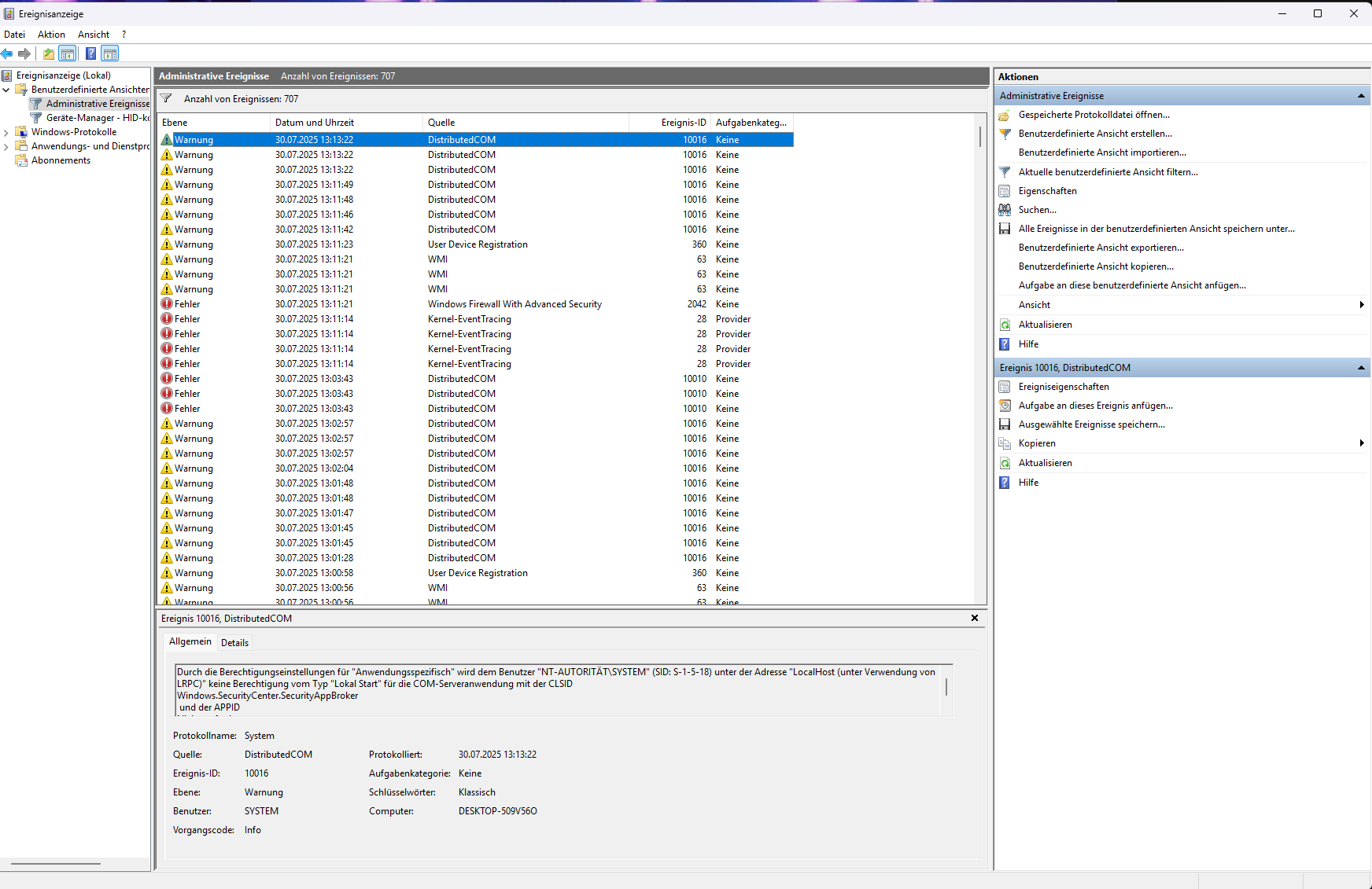 diese Warnungen mit Fehler 10016 kannst Du schon mal ignorieren. Die tauchen bei vielen, wenn nicht sogar bei allen seit Windows10 auf. Lassen sich auch nicht dauerhaft beheben, zumal sie keine Einflüsse auf den PC-Alltag haben.