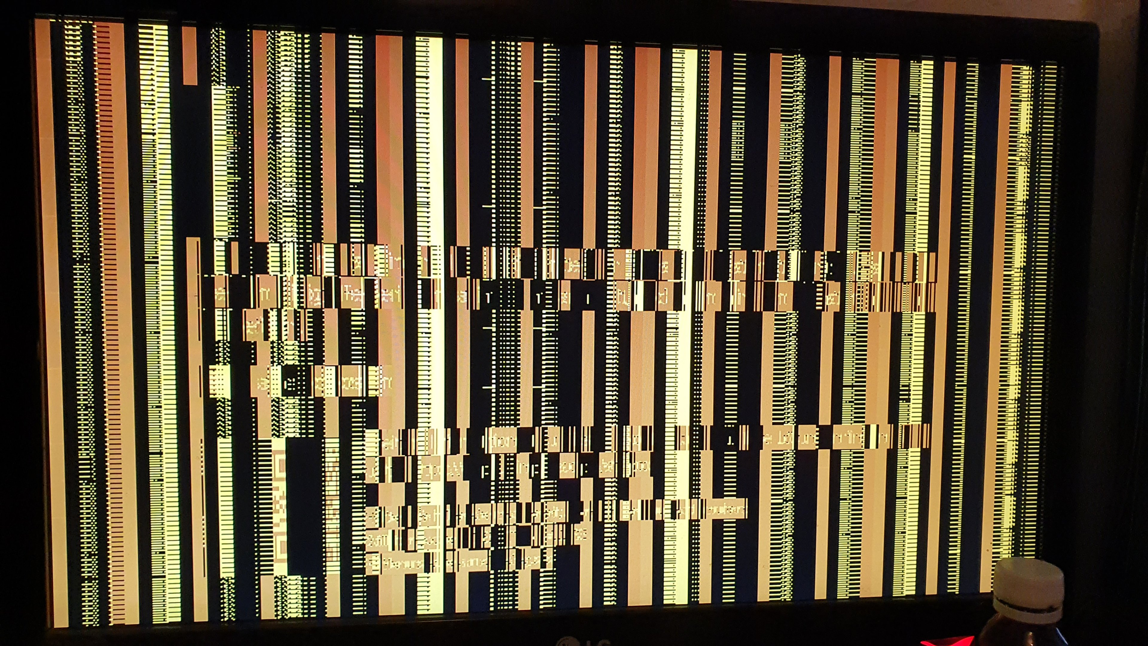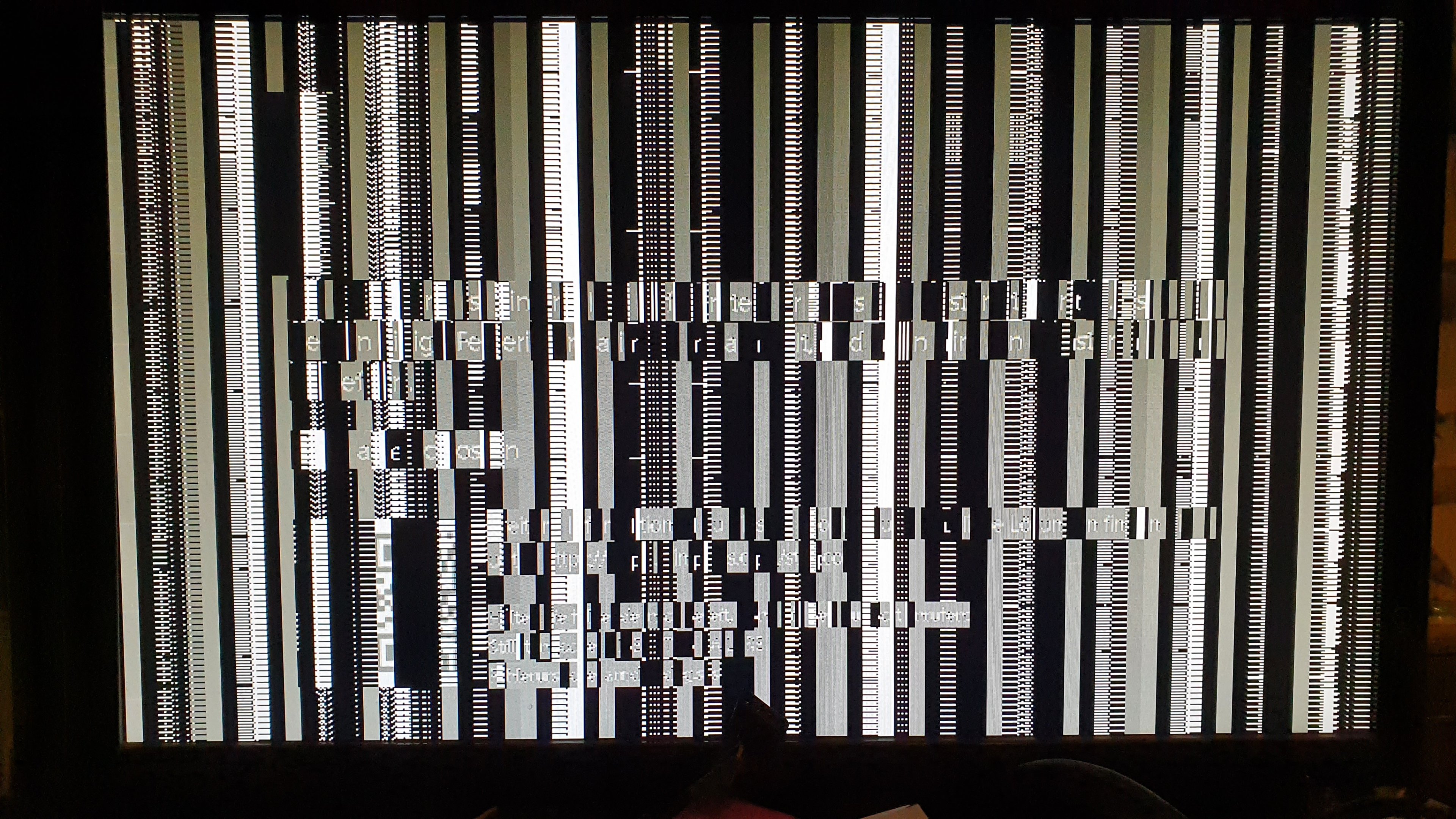 Jetzt habe ich heute den PC wieder genutzt, wie die letzten 5 Jahre auch und es lief auch wieder stundenlang problemlos, zocken geht, arbeiten geht, alles geht wie immer, bis auf einmal während dem Zocken(die anderen male war es nicht beim zocken, sondern nur bei Word, oder Surfen) das Bild eingefroren ist, nach 2 Sekunden wurd es dann schwarz und nach weiten 5 Sekunden gab es auf beiden Monitoren diese beiden seltsamen Bilder: