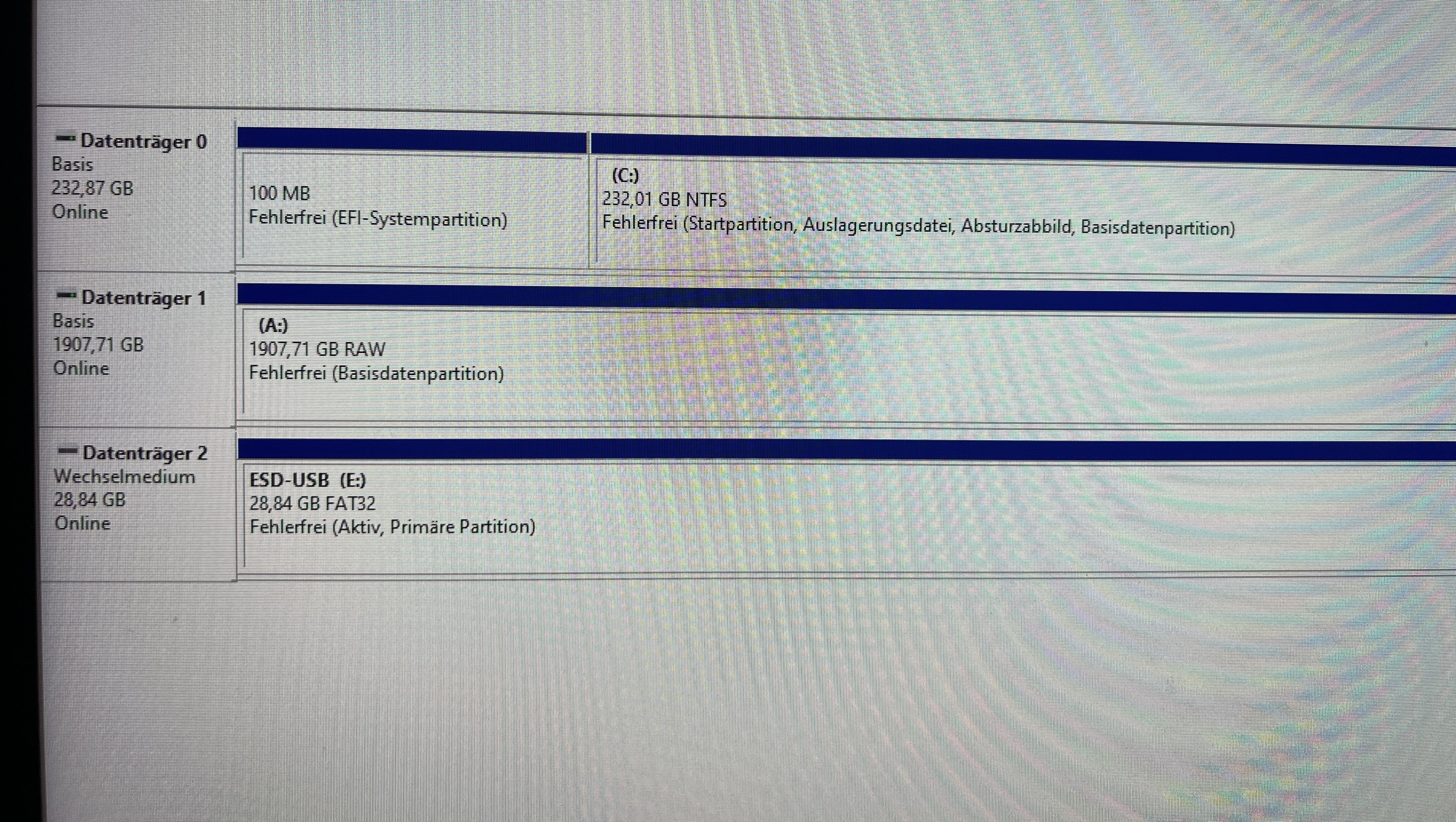 -beide M.2 SSDs werden in Windows nicht mehr angezeigt (auch nicht in diskpart)