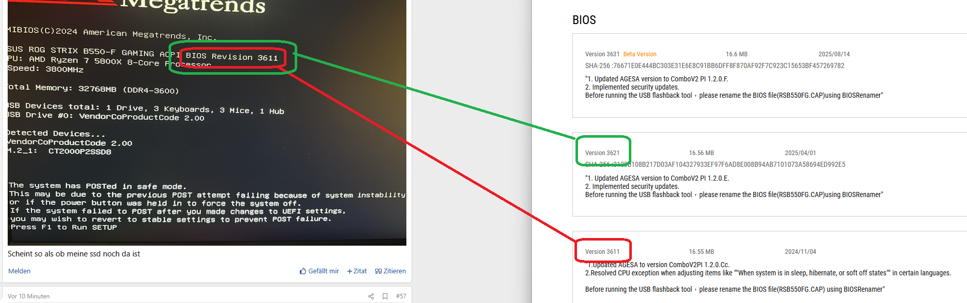 So bios update ging durch auf morgen warten obs was ändert mit neuen ssd