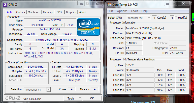 CPU: Nie über 35°C (Corsair Hydro H55 Wasserkühlung).