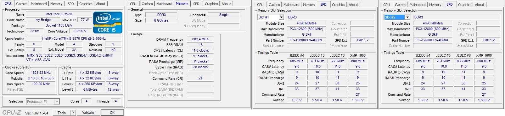 RAM: 2x G Skill F3-12800CL9-4GBRL 4 GB DDR3-1600 Kit