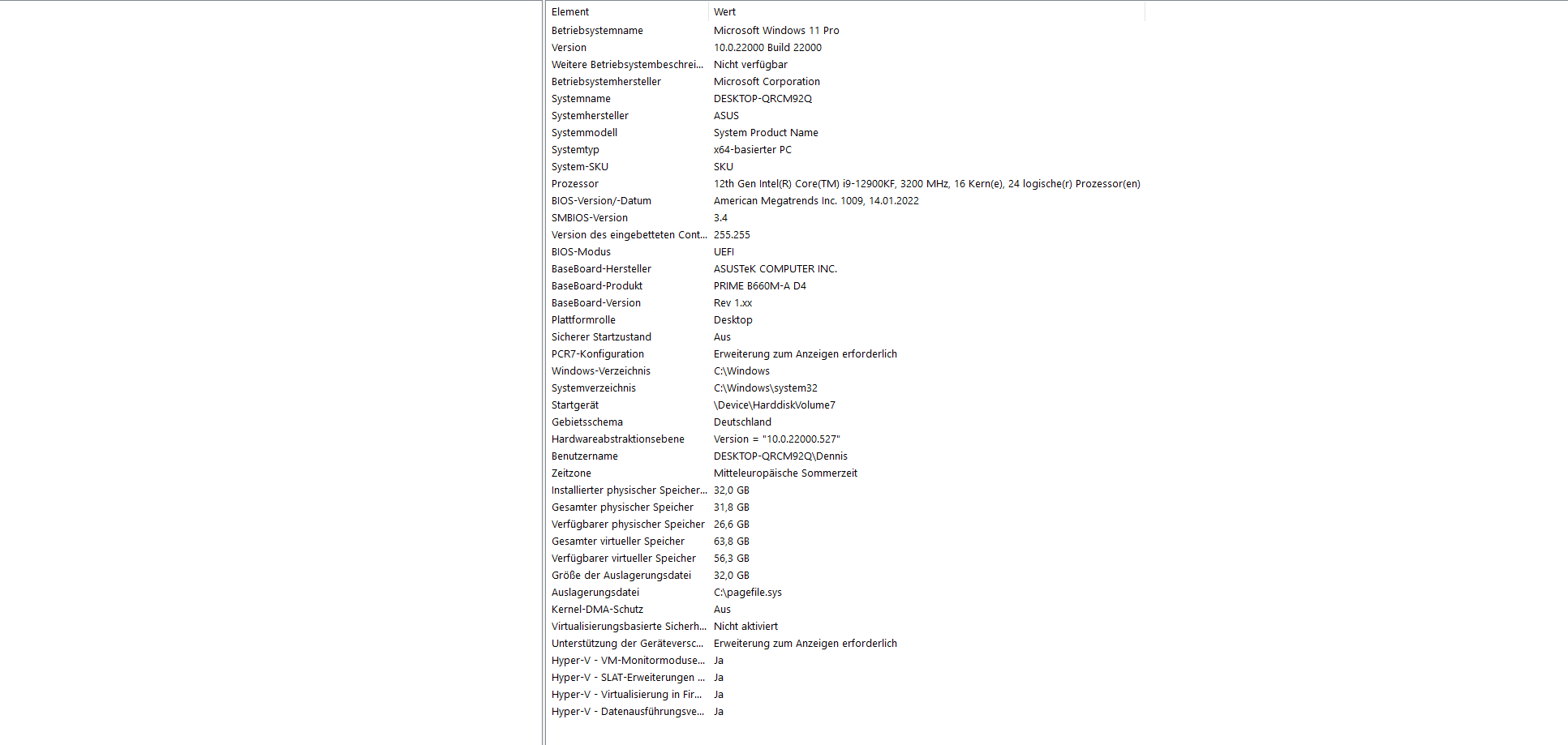 Prozessor: Intel i9-12900KF, 3200 MHz, 16 Kern(e), 24 logische(r) Prozessor(en)