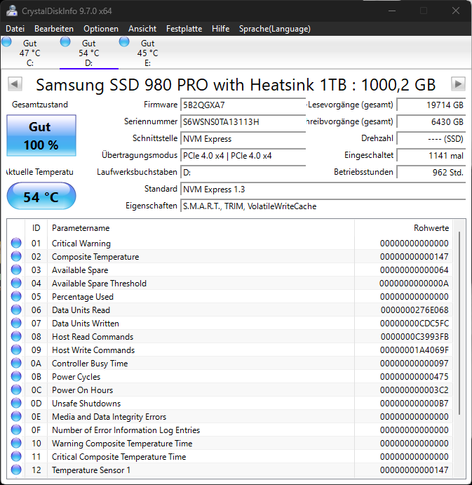 Wolltest du nicht noch den Zustand der Datenträger laut CrystalDiskInfo posten?