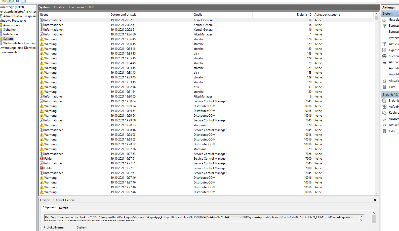 Ich habe noch ein paar Screenshots angehängt HW-Monitor, Ereignisanzeige und noch CrystalDiskInfo.