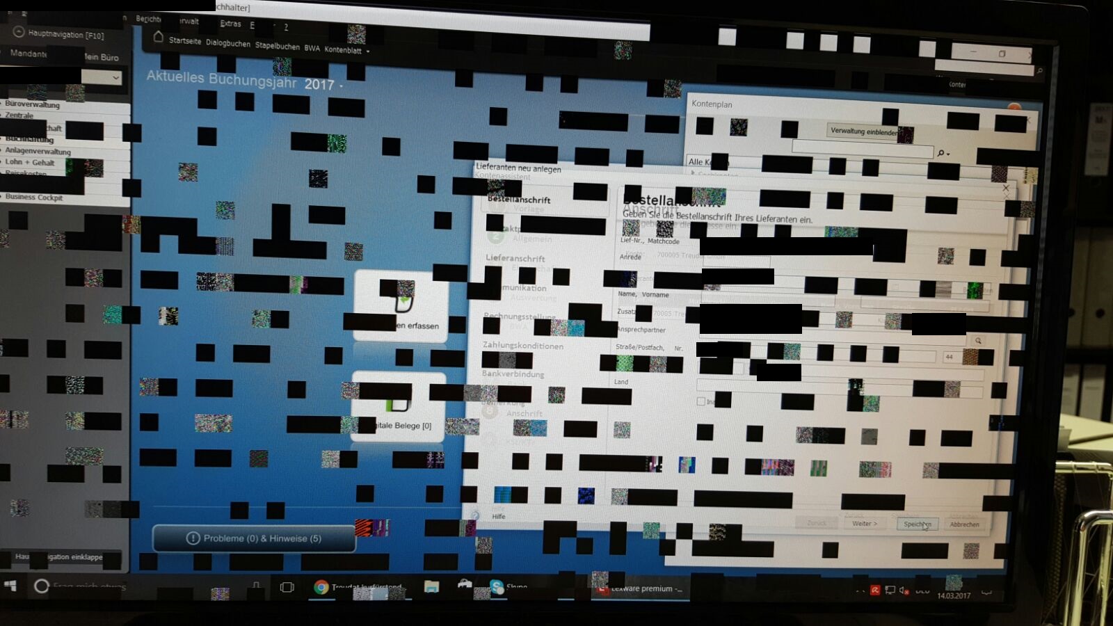 ich habe vor etwa 2 Monaten einen PC zum Arbeiten gebaut (aus Neuteilen) und habe nun Probleme damit. Es fing damit an, dass der PC einfror, wenn man gegen das Gehäuse stieß und nur ein Neustart (8 Sekunden halten) noch half. Vorgestern ist der PC dann im Betrieb eingefroren und hat diesen Bildfehler gezeigt (siehe Bild). Danach startete er nicht mehr.