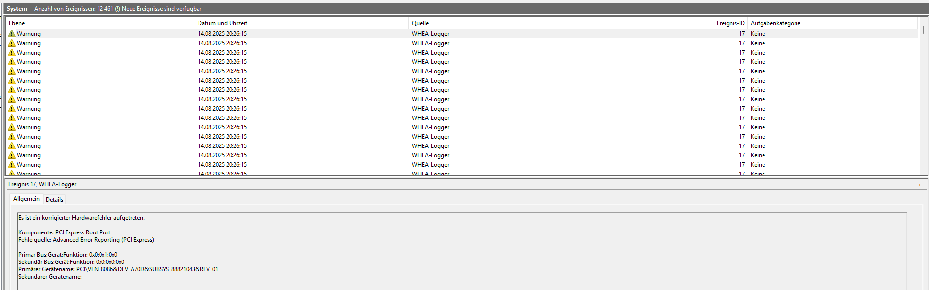 Das einzige was ich kürzlich grob geändert habe war Secure Boot zu aktivieren (für BF6). Davor war das System sehr stabil.