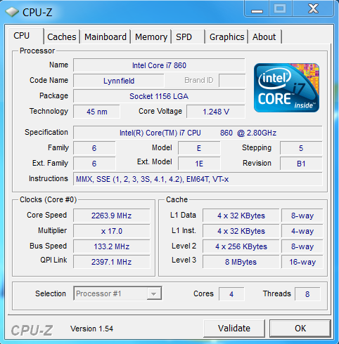 CPU: Intel code i7 860
