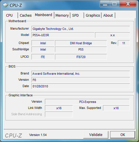 Mainboard :Gigabyte GA P55A UD3R