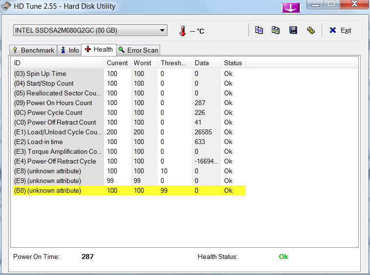 Ebenso die Festplatte(n) mit HDTune auf Fehler überprüfen (nicht Quickscan) und einen Screenshot vom Reiter "Health" (SMART-Werte) machen.