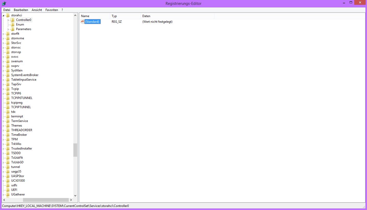 Wieso hast Du nicht einfach den Befehl so ausgeführt wie ich ihn geschrieben habe? Dann sollte der Werte korrekt angelegt werden mit allen nötigen Unterschlüsseln. Ob es mit dem storahci noch geht, kann ich nicht versprechen beim msahci ging es noch so.