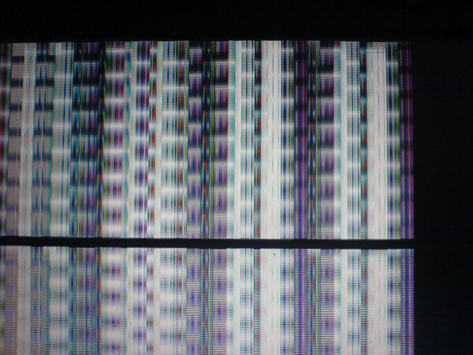 (Nach dem Absturz sieht das Muster ungefähr wie auf dem Bild aus, wenn man auf dem Desktop war, ist das Hintergrundbild noch irgendwie zu erkennen allerdings von diesem Muster überlagert)