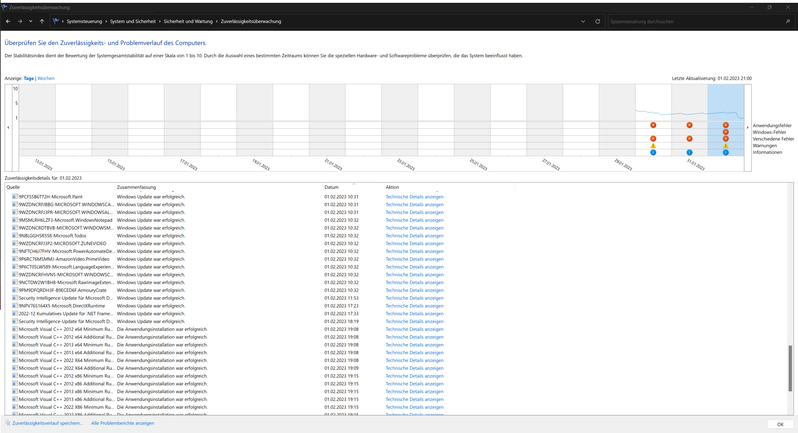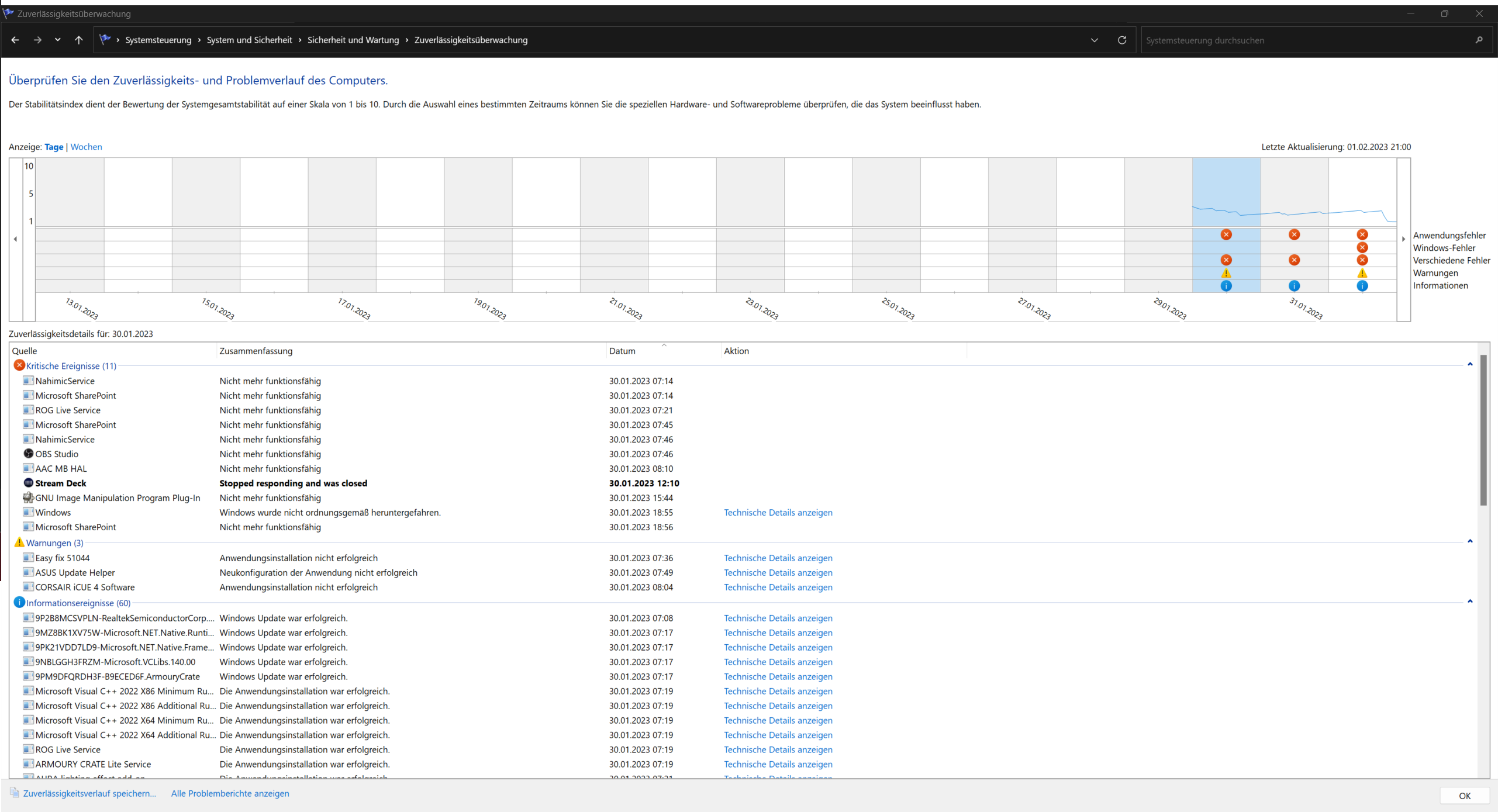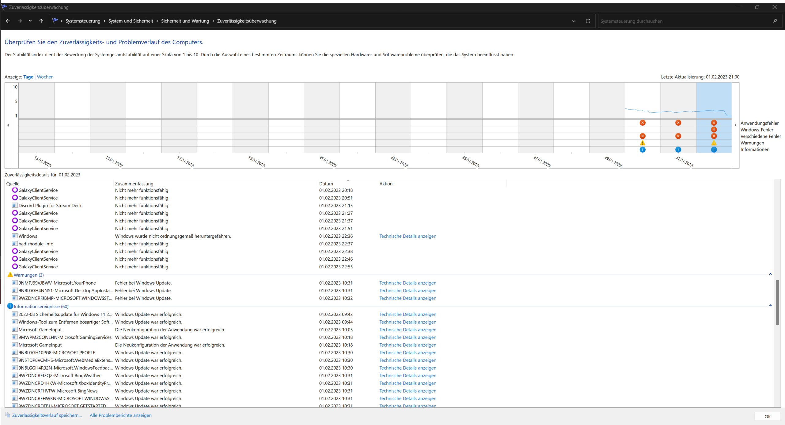 Ich weiß ehrlich gesagt nicht mehr was ich machen soll. Im anhang werde ich ein paar Bilder von der Ereignisanzeige packen. In der Zuverlässigkeitsüberwachung ist auch zu erkennen, dass wenn der PC einfriert, immer gleichzeitig mit Microsoft GameInput was passiert ist. Vielleicht gibt es da ja einen zusammenhang?