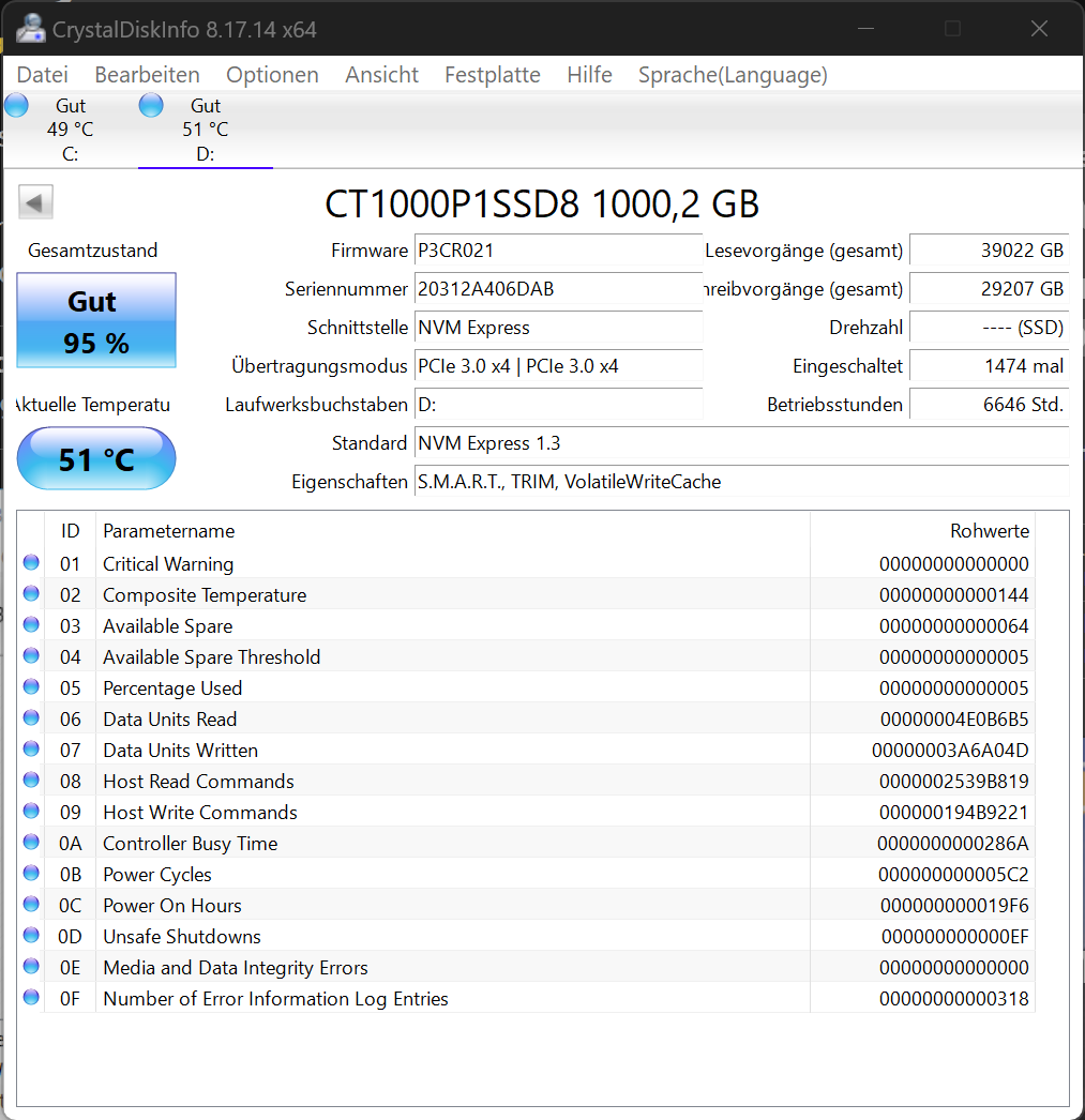Speicher: Crucial P1, M.2 1tb