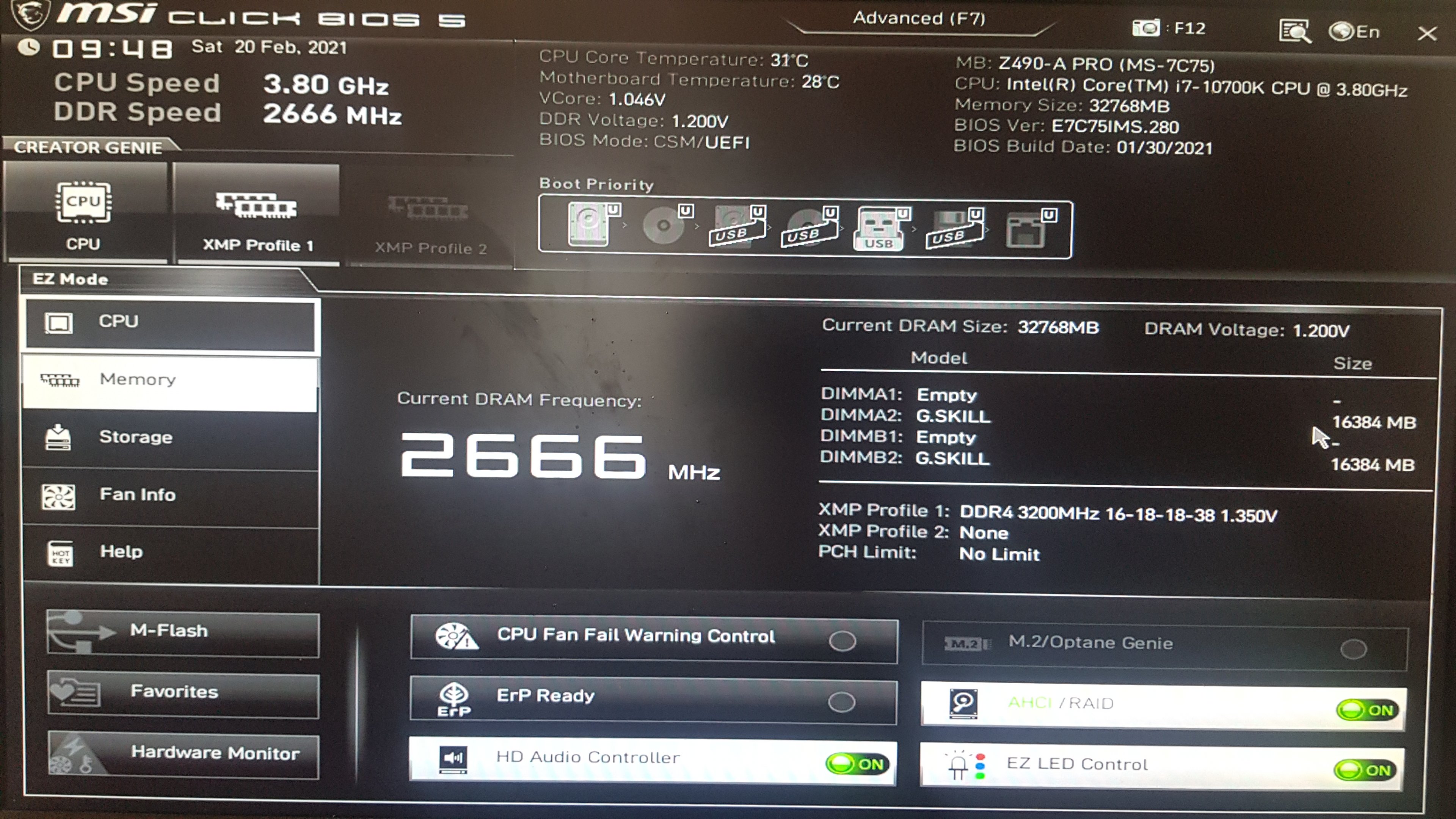 - Arbeitsspeicher (RAM): 32 GB DDR4-3200 16-18-18-38 G.Skill