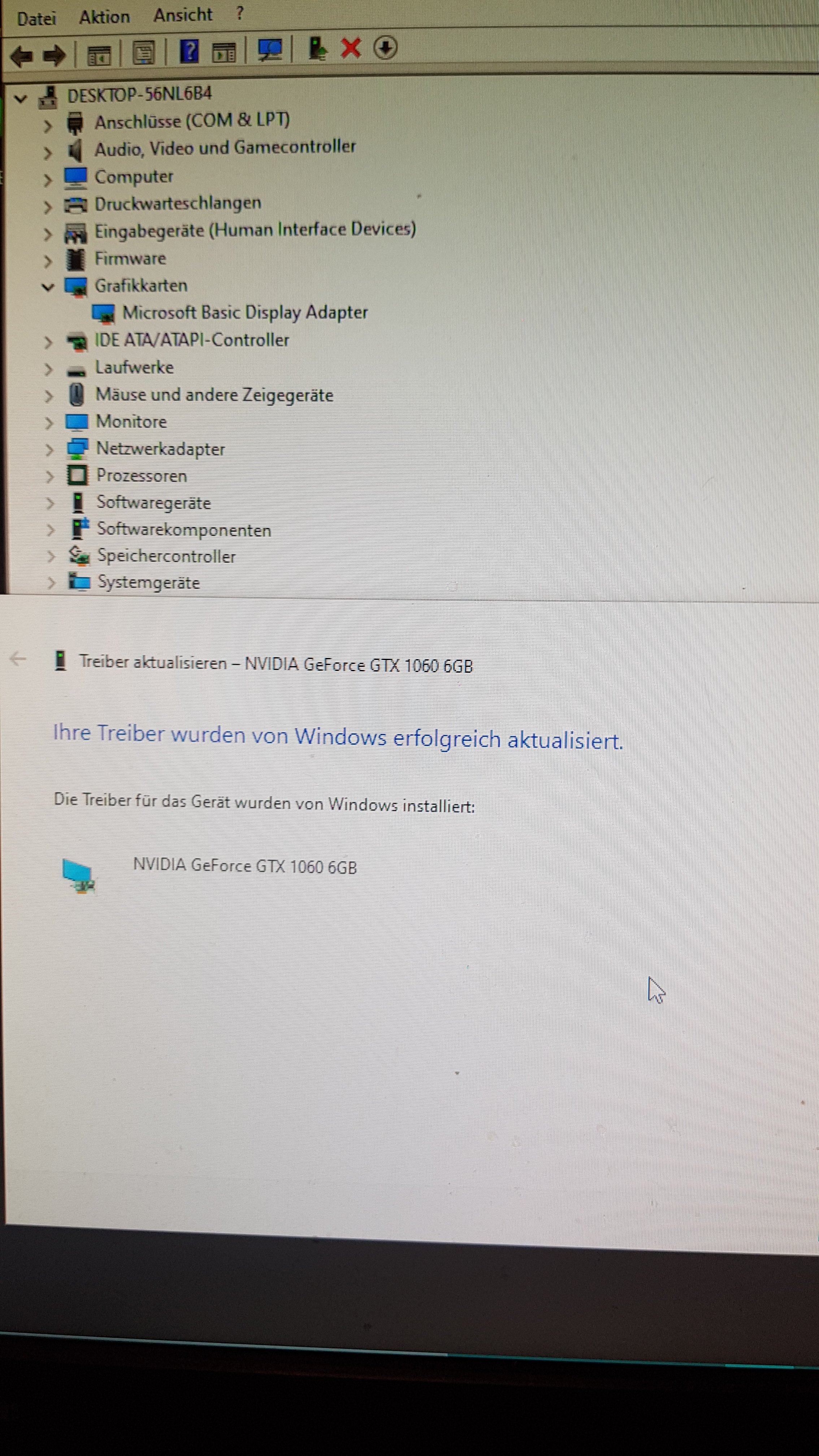 Monitor ist an die GPU angeschlossen und Zeigt den Bildschirm - wird aber nicht im Gerätemanagement angezeigt, weil normaler Weise steht da immer GTX 1060 und wenn Ich es mit der Graka versuche steht irgendwas mit Windows...?