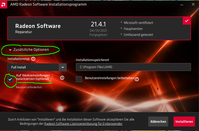 Nimm den empfohlenen Treiber 21.4.1 für die Vega.