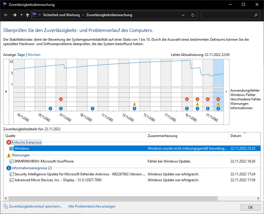 Das System wurde neu gestartet, ohne dass es zuvor ordnungsgemäß heruntergefahren wurde. Dieser Fehler kann auftreten, wenn das System nicht mehr reagiert hat oder abgestürzt ist oder die Stromzufuhr unerwartet unterbrochen wurde.In einem anderen Thread hatte wohl ein BIOS Update geholfen. Ich habe vorhin mein UEFI auf die neueste Version von der ASRock Seite aktualisiert und danach die Einstellungen auf Default gesetzt. Danach ist der Rechner auch wieder eingefroren.