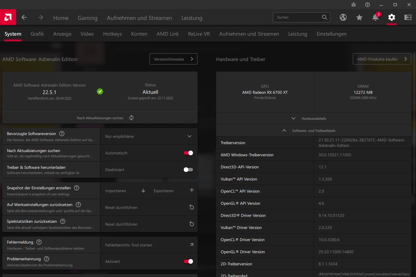 Der Grafikkartentreiber ist auch auf dem neuesten Stand.