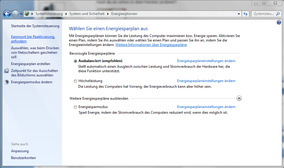 hab grad schonmal bei meinem laptop geguckt, wegen Energieeinstellungen auf Höchstelistung.