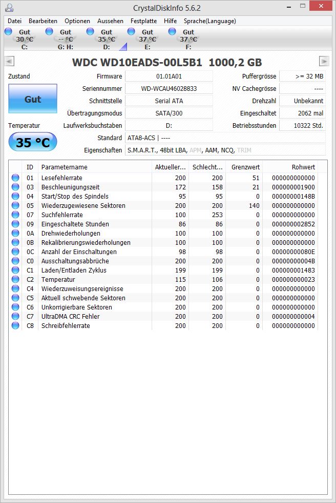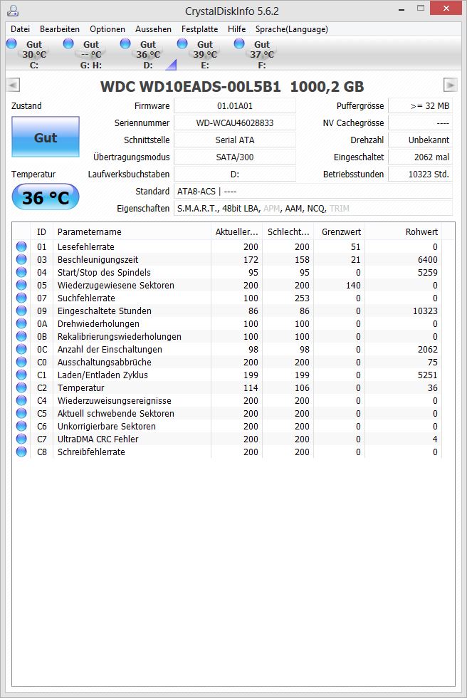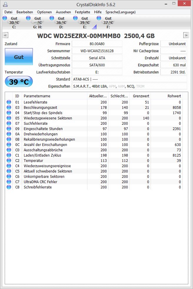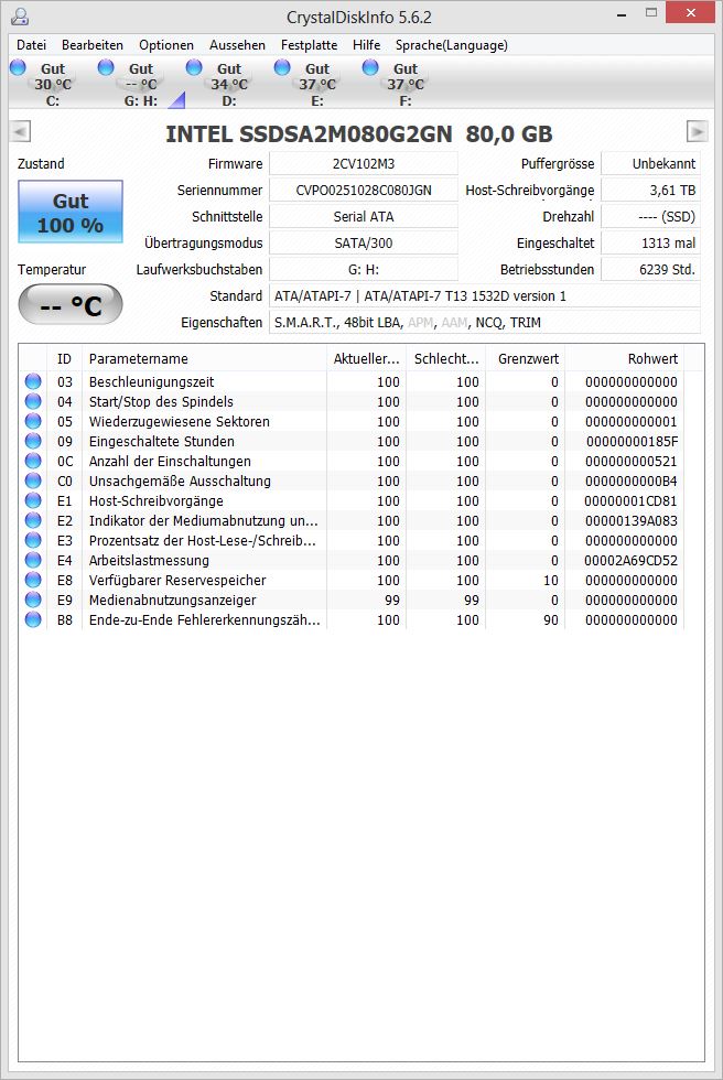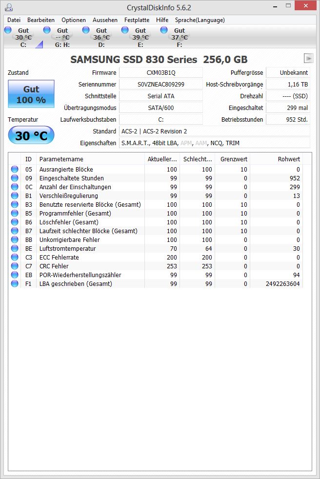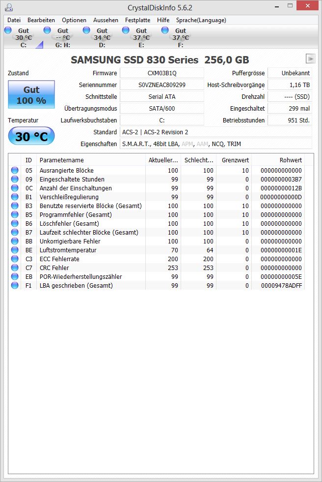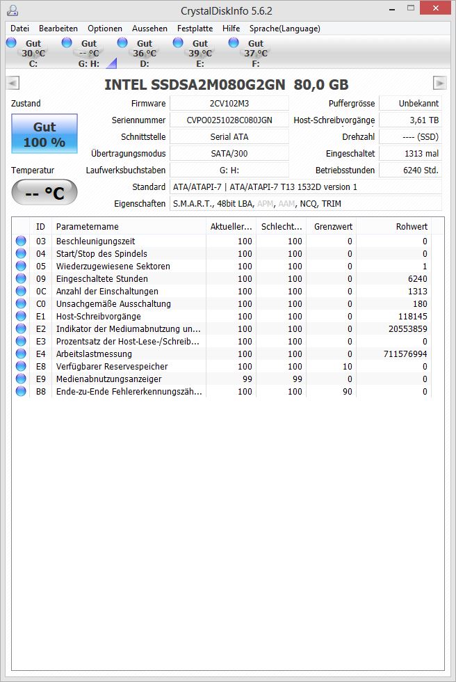 dazu noch 3 HDDs (alle von Western Digital) und 2 SSDs (einmal eine Intel X25-M und einmal eine Samsung 830)