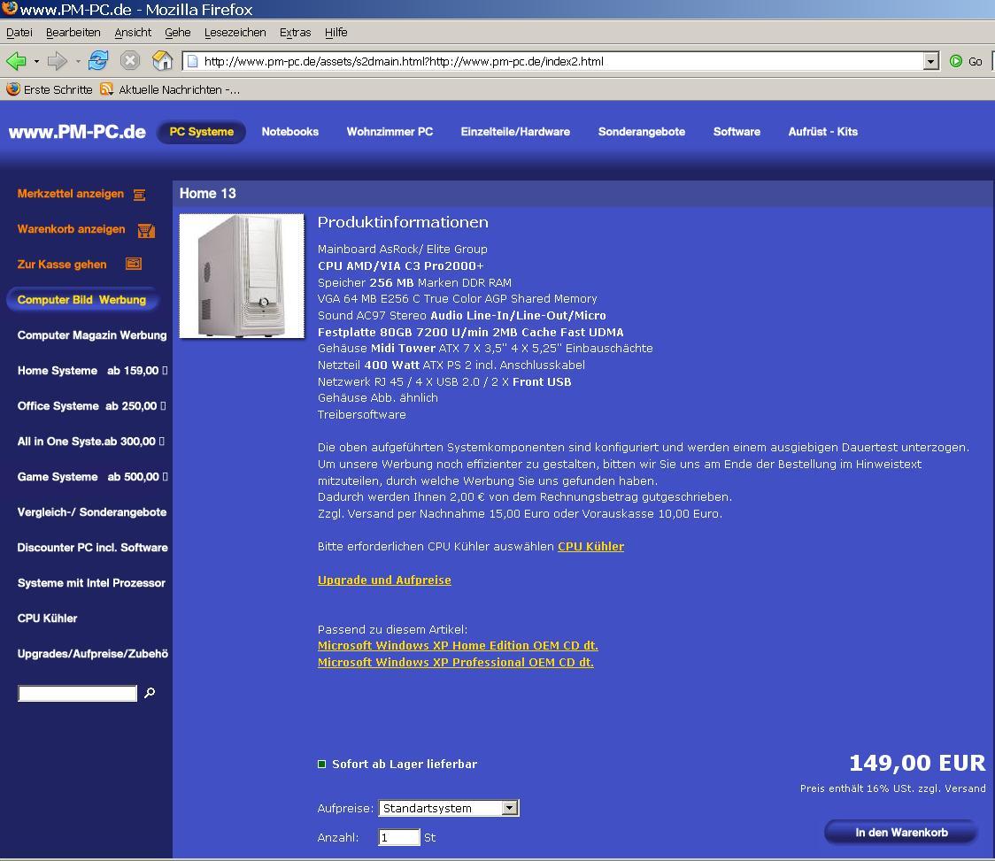 Das einzige was mich am PC im Marktplatz stört, ist das etwas schwache Netzteil (jetzt sagt wieder einer: Nein, das langt...), aber da Grafik und Sound OnBoard sind, sollte das wohl reichen oder?! Im Falle einer Komponentenaufrüstung müsste das sicher gleich mit ausgetauscht werden.