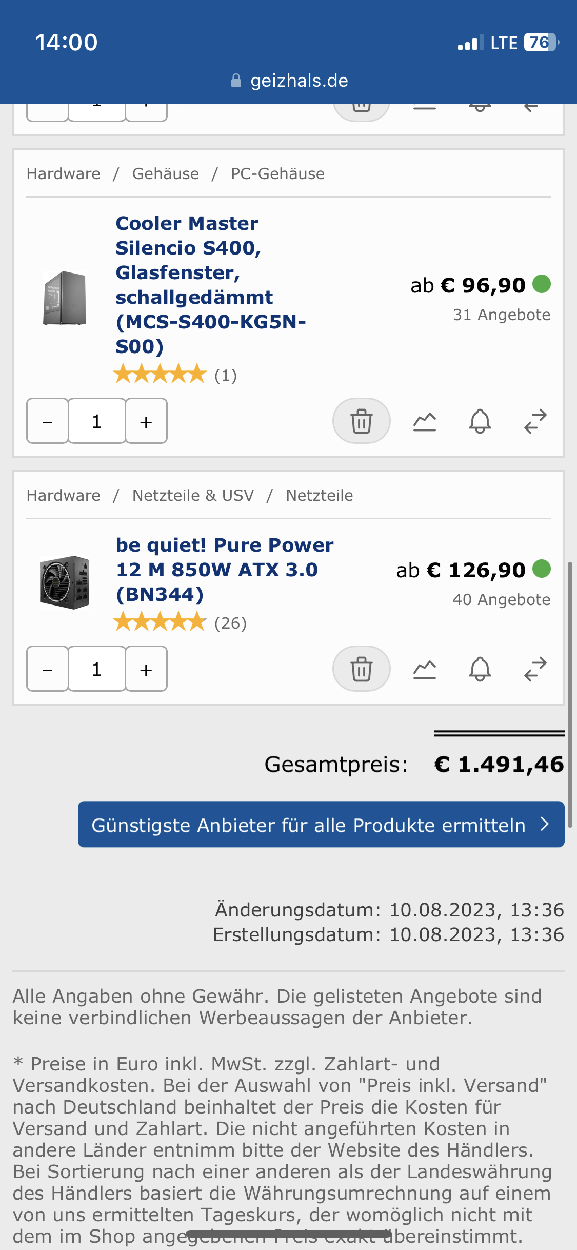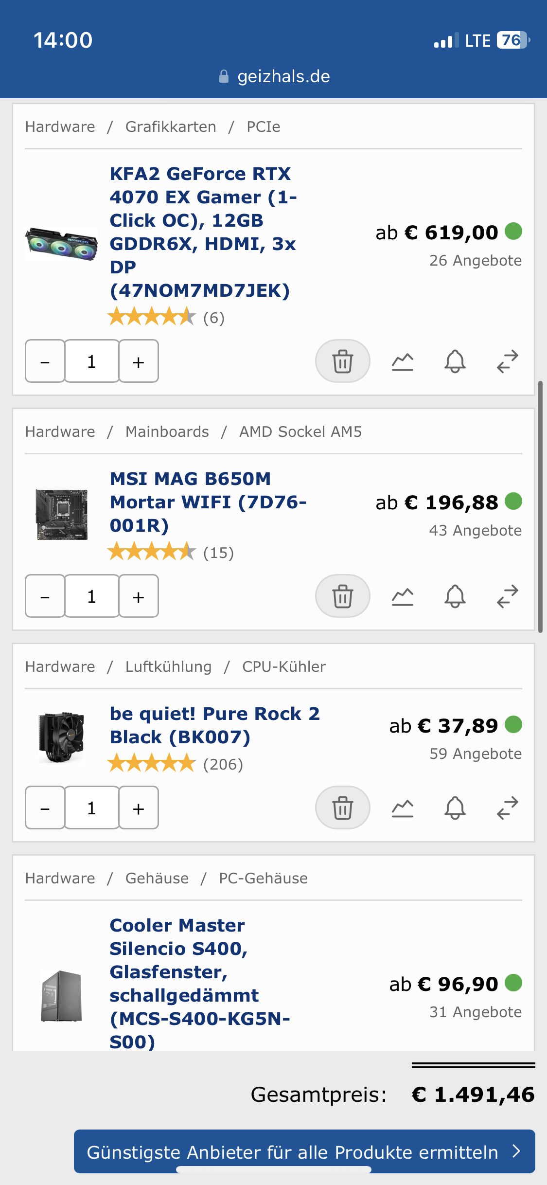 ich werde mir demnächst einen neuen PC zulegen und habe entsprechend meines alten PC‘s (den ich weitergeben werde) an die Hersteller und Modelle gehalten. Passt das euerer Meinung nach so, oder sollte ich irgendwo eine Konfiguration ändern?