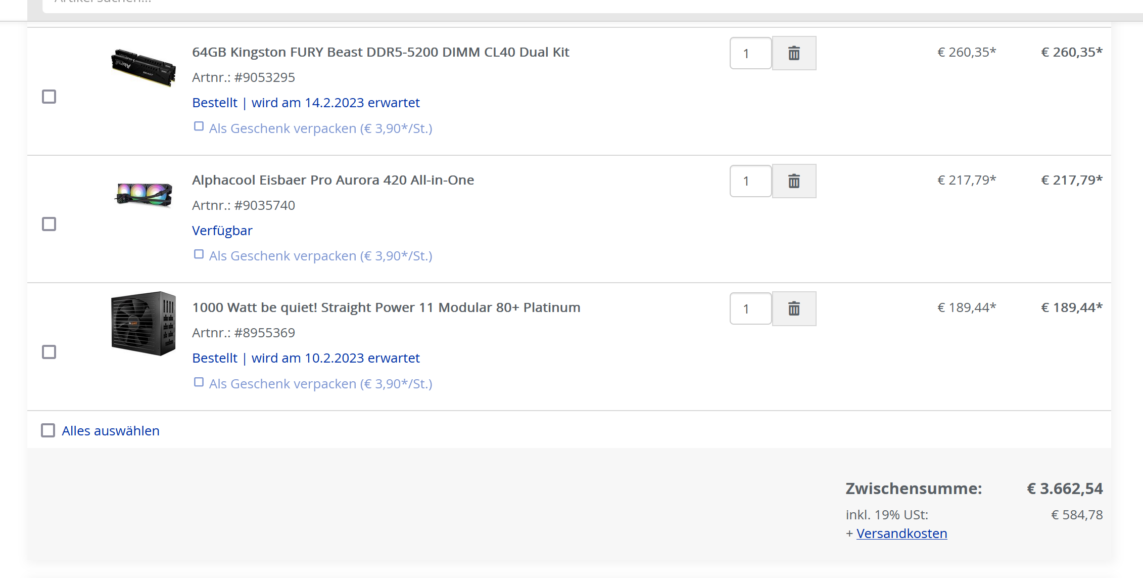 Auf Mindfactory Einzelteile bestellen und von denen zusammengebaut liefern lassen.