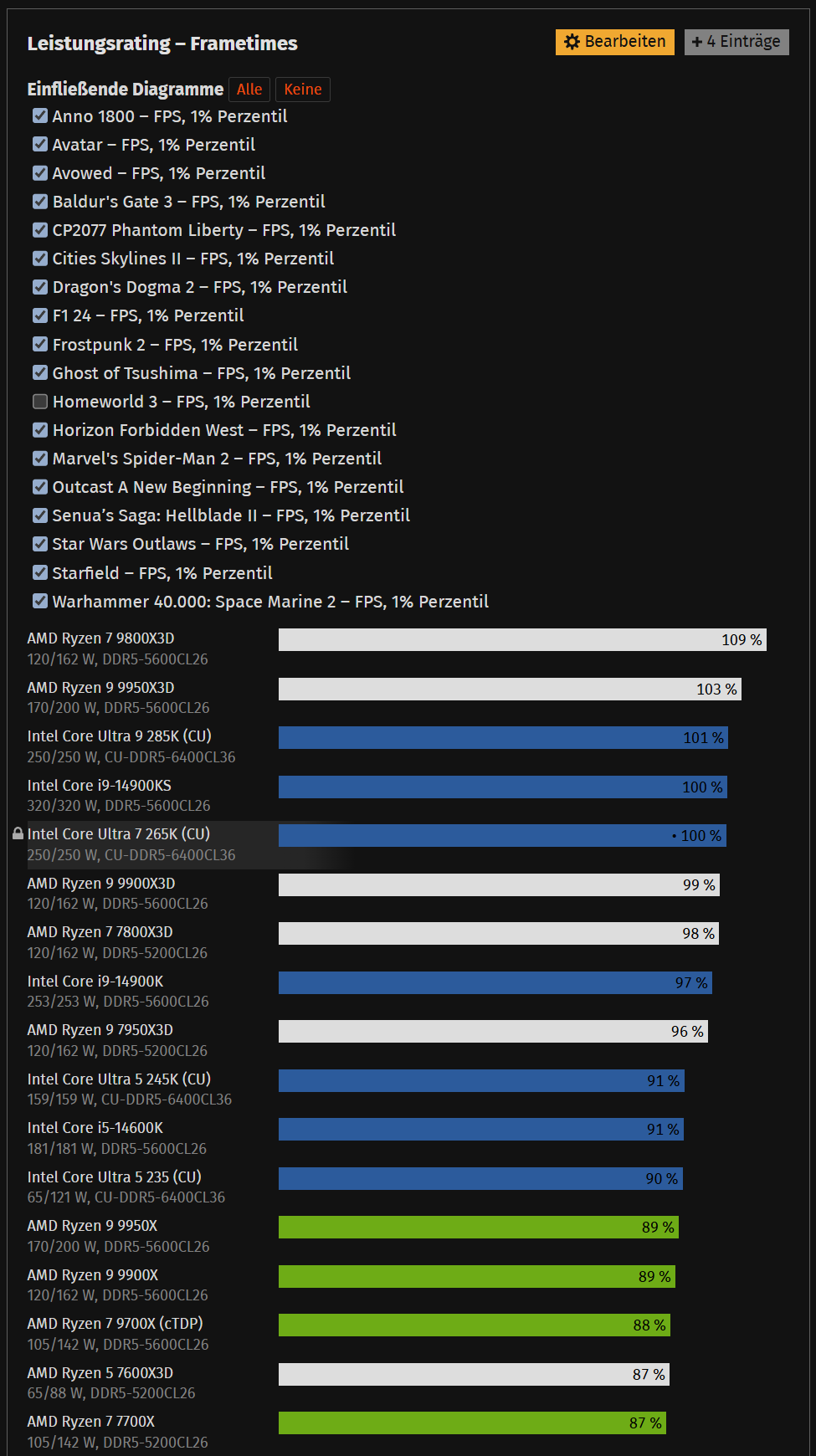 ich habe homeworld rausgenommen, weil das ding auf intel einfach nur kaputt ist (250% delta vom 265k zum 9800x3d).