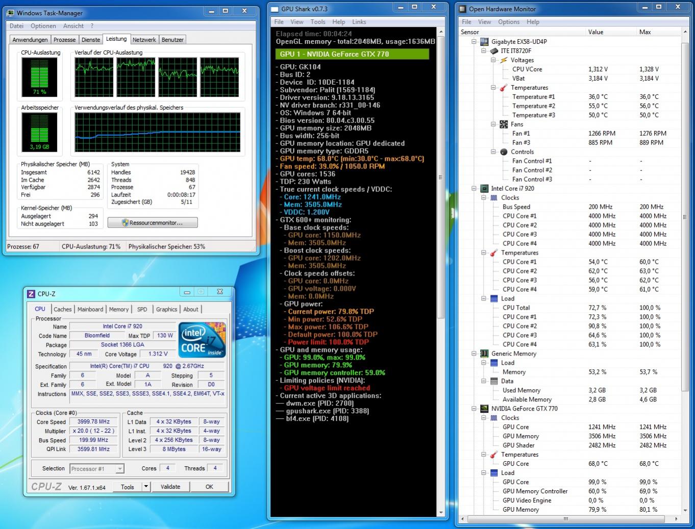 Ich hab die CPU testweise auf 4,1mhz übertaktet (beim Spielen geht die Temp nicht über 70C) und konnte damit die GPU auslastung auf ca 80% treiben.