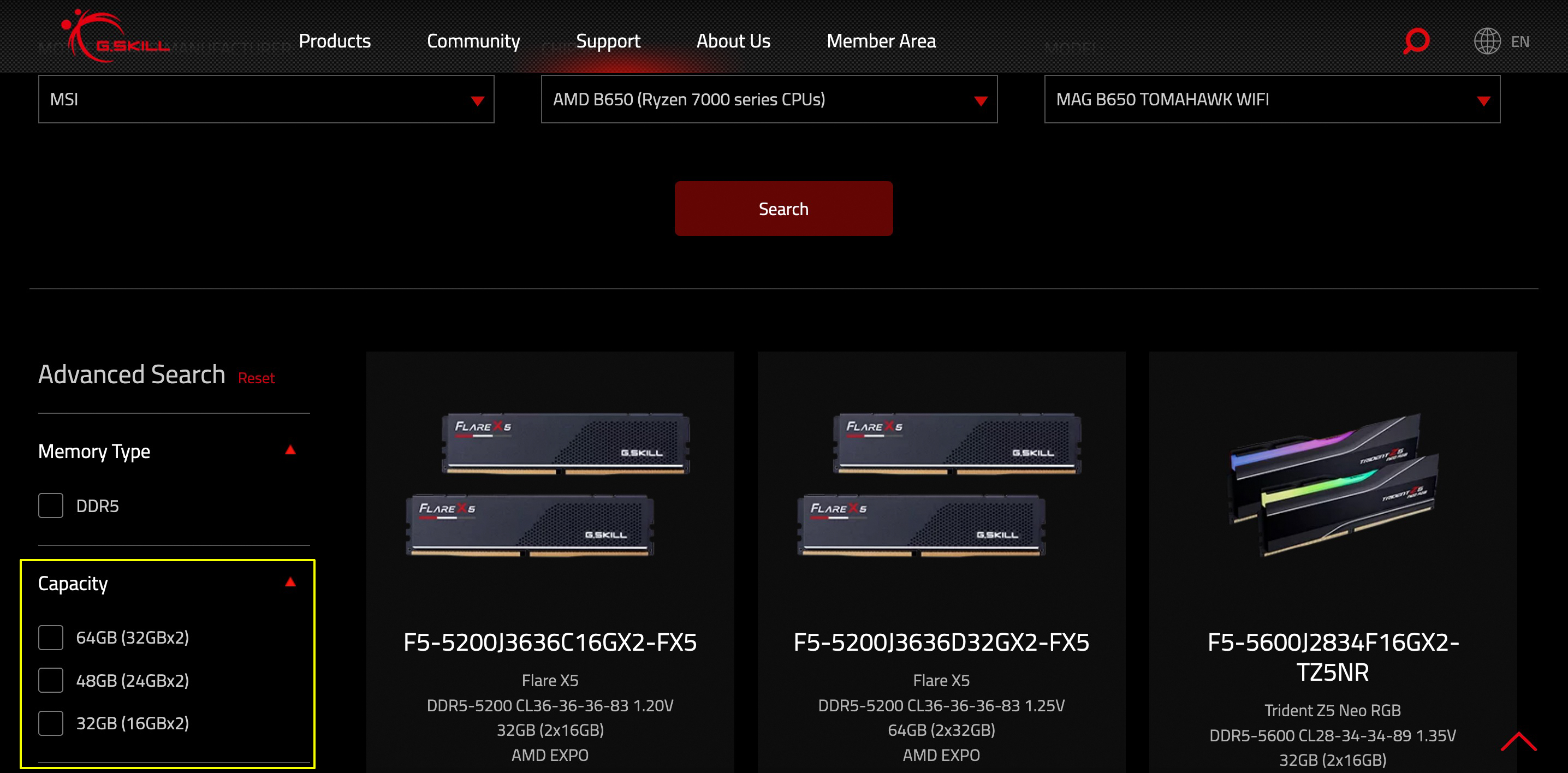 64 GB RAM (2x 32GB; DDR5; 5600), z.B.: Corsair Vengeance, Kingston Fury Beast, Kingston Fury Renegade RGB