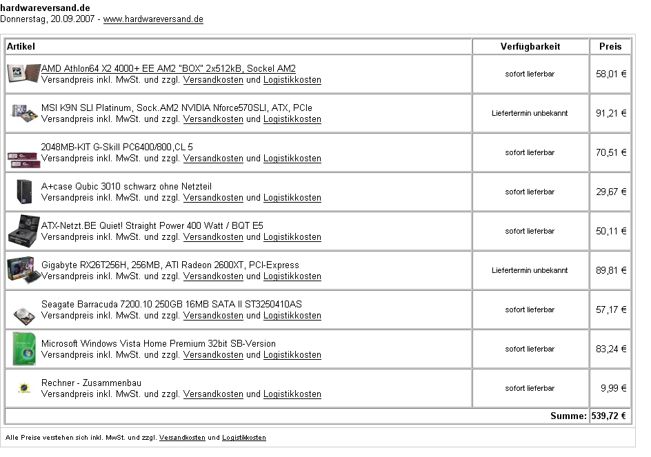 Da mein PC (AMD 2600+, 512 MB RAM und GeForce 5900xt) nicht mehr so leistungsfähig ist, habe ich mir folgendes System zusammengestellt.
