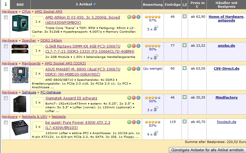 habe mir schon eine Zusammenstellung überlegt, da ich mich aber mit Hardware in diesem Preisbereich nicht wirklich auskenne, bitte ich um (eventuelle) Verbesserungsvorschläge!
