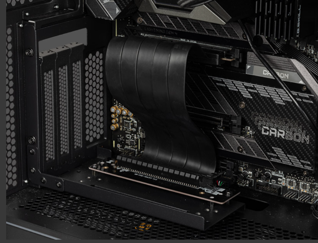Im Gehäuse sind zwei Aussparungen für den Horizontalen Einbau der Graka, brauche ich dann nur noch das Riser Kabel. Es ist bei der Zotac RTX 4090 ein Halter mit bei für die Graka, damit die lasst nicht alleine auf dem PCIe Steckplatz hängt. Ich wollte halt das Board entlasten.