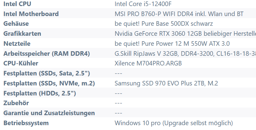 Ich will den PC bestellen und von denen zusammenbauen lassen und bin in der Auswahl der Teile deswegen auf den jeweiligen Shop beschränkt. Ich kann einen RAM-Riegel einstecken und habe mal eine SSD in meinen Rechner eingebaut. Damit hört es dann aber auf bei mir.