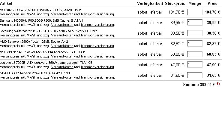 Also das System darf nicht mehr als 400€ kosten. In diesem Betrag sollen schon die vielleicht aufkommenden Versandkosten mit berechnet werden.