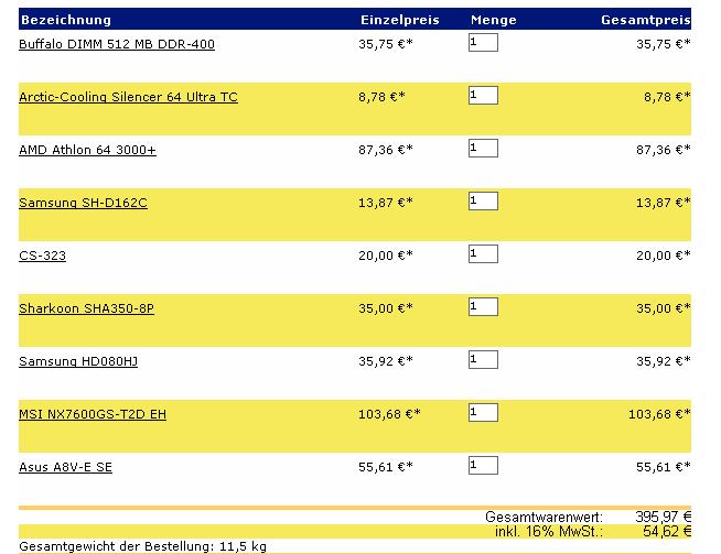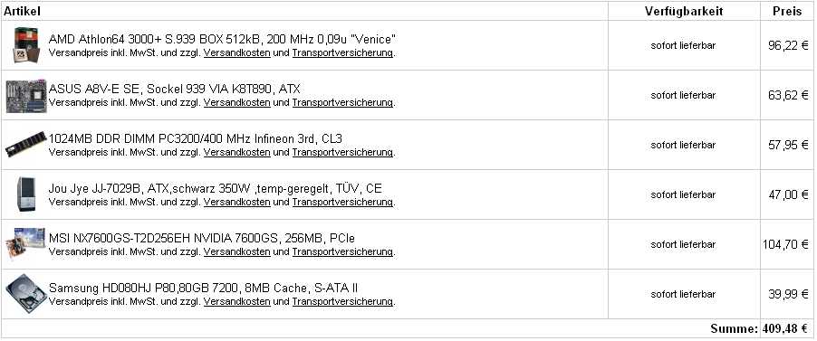 Ich meine diesmal ist ein Markennetzteil dabei, ein Markengehäuse und trotzdem ist eine gute CPU und eine ausreichende Graka untergebrahct worden. 512MB RAm sind auch erstmal okay (kann man ja später einfach nachrüsten) und der DVD Brenner scheint auch ganz gut zu sein.