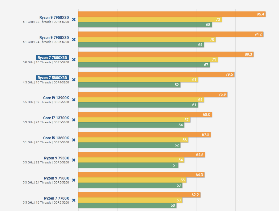 1) Nicht so ganz klar ist mir hingegen, wie weit die Leistung bei MSFS in die mittleren oder niedrigen Grafikeinstellungen abfällt, wenn ein 7700/7700X mit einer im günstigsten Fall 6700 XT oder eben 7800 XT eingesetzt würde.