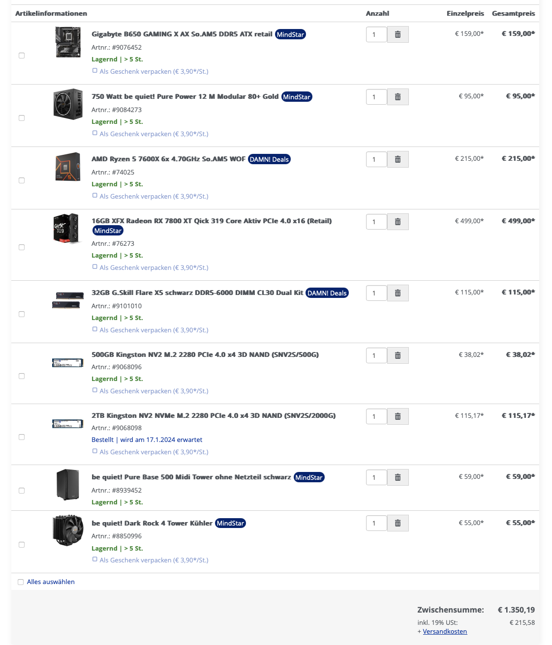 Ich habe bereits selber nach Hardware geschaut, nur bin ich komplett raus was Aktuelle Hardware angeht. AM4 / AM5? oder doch Intel? Würde tatsächlich zu AM5 tendieren aufgrund der aktuellen Plattform.