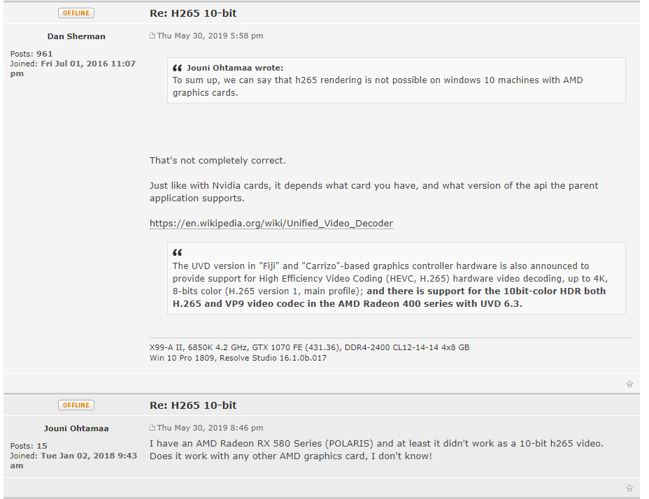 - Ist 10 bit Farbtiefe denn überhaupt erstrebenswert für einen Hobby-Nutzer wie mich? Colorgrading mag mit 10bit wesentlich mehr hergeben, aber zahlt sich diese Investition in ensprechende Hardware denn aus? Vor allem wenn man daran denkt, welche anderen Nutzer einen 10bit Monitor zu Hause haben? Die kurzen Filme werden aktuell nur nur auf Hobbybasis erstellt und wenn, dann auf YouTube veröffentlicht.