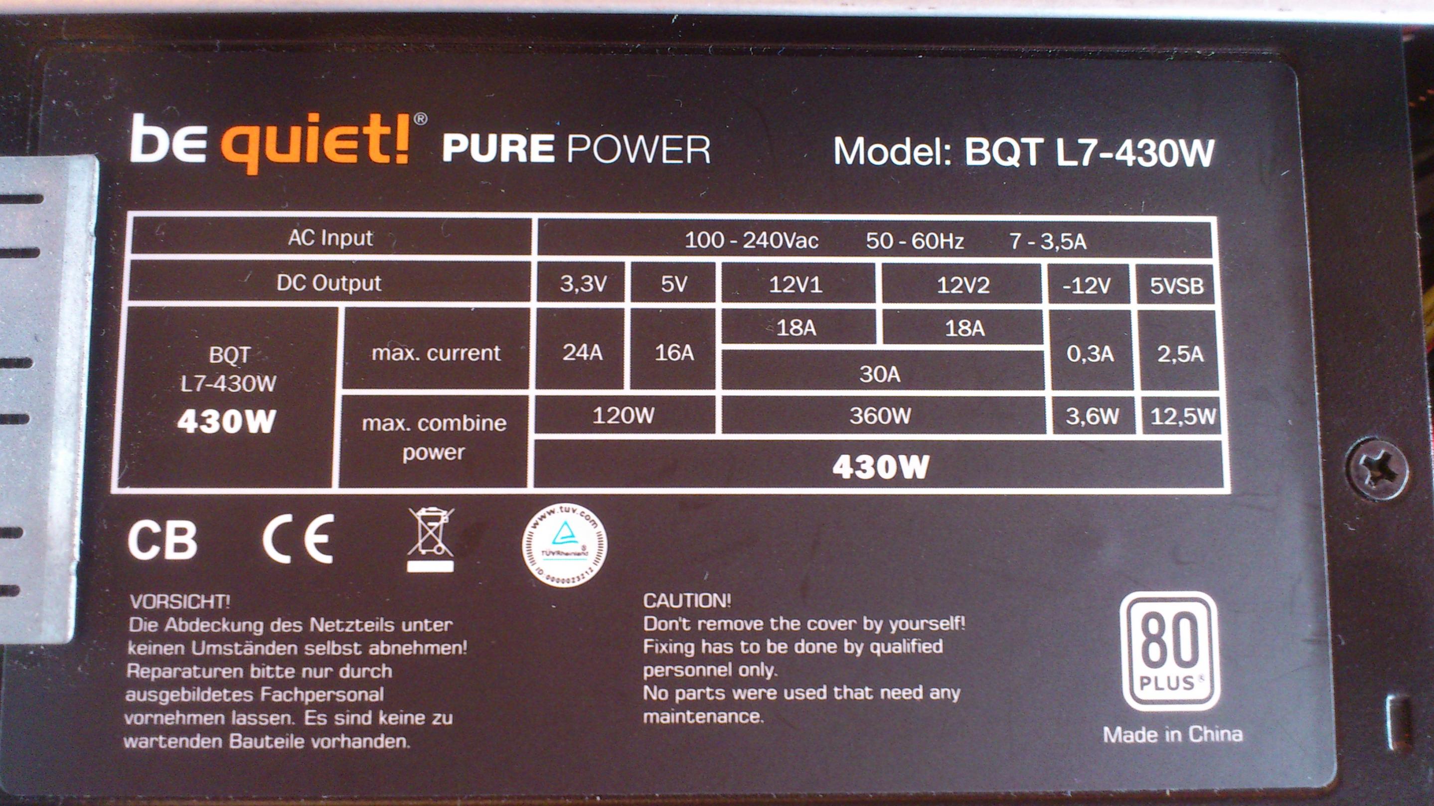 430 Watt be quiet! Pure Power L7 Non-Modular 80+