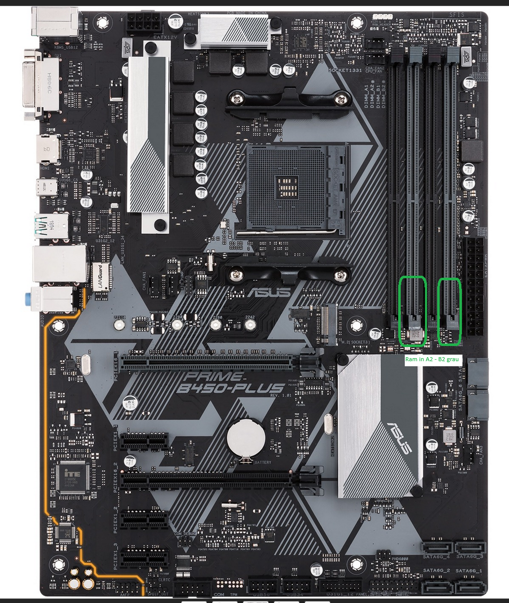 Nach dem Einbau startet der PC (Lüfter drehen, MB leuchtet), aber es wird kein Bild angezeigt. PC-Fachmann meinte, dass die UEFI-Firmware zu alt sei. Das ist gut möglich, denn: Das MB ist seit 31. Juli 2018 auf Amazon verfügbar, die CPU aber erst seit 4. April 2022. Also habe ich mir einen älteren AM4-Prozessor gekauft (AMD Ryzen 3 PRO 1200). Problem: Immer noch kein Bild. CMOS wurde bereits gecleart. Ich habe auch eine andere Graka getestet.