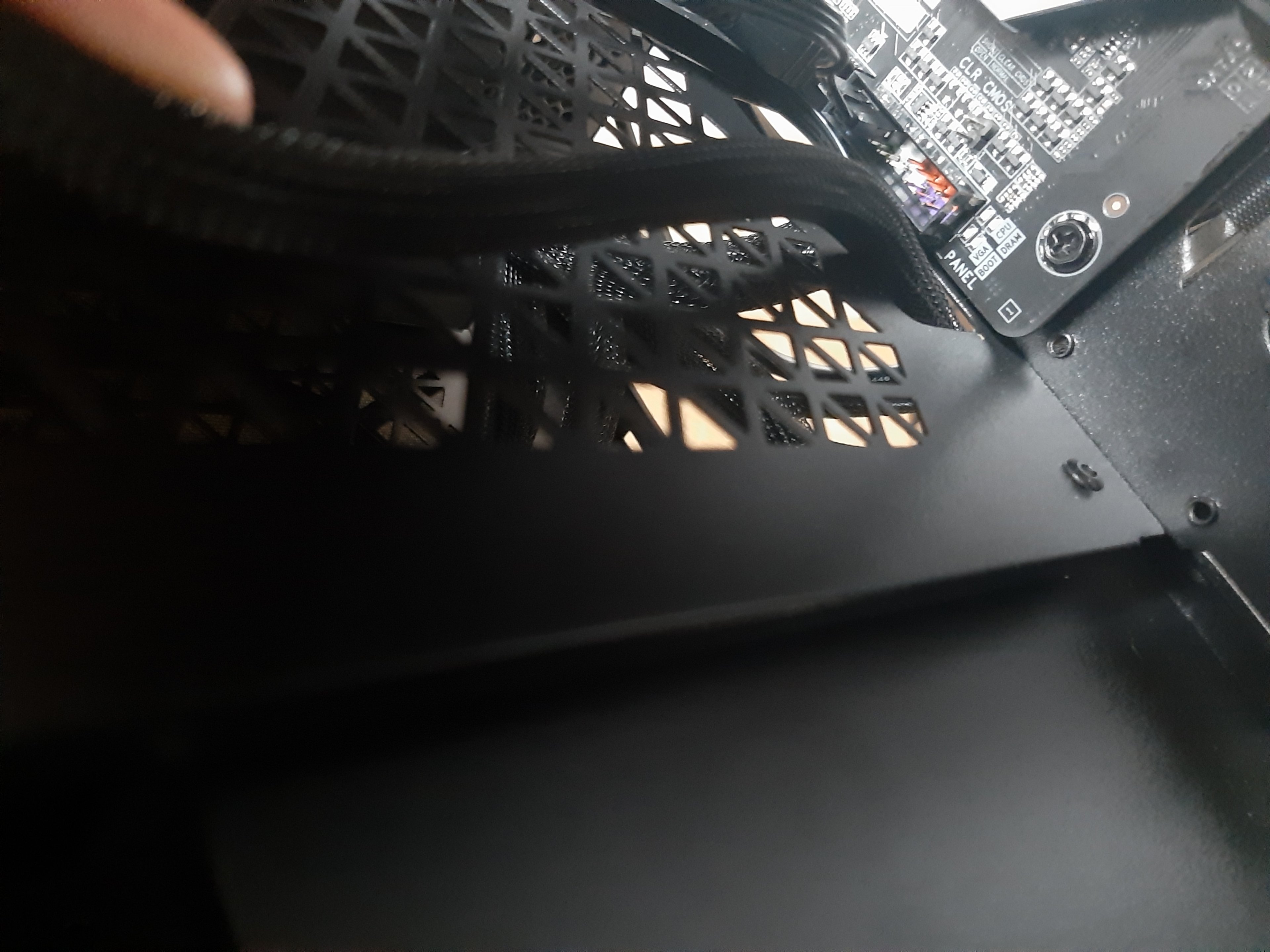 Und wo geht den das Kabel vom CPU-Kühler hin, hinter das Board - oder täuscht das? Der Anschluss sollte doch unterhalb des CPU-Sockels irgendwo sein.