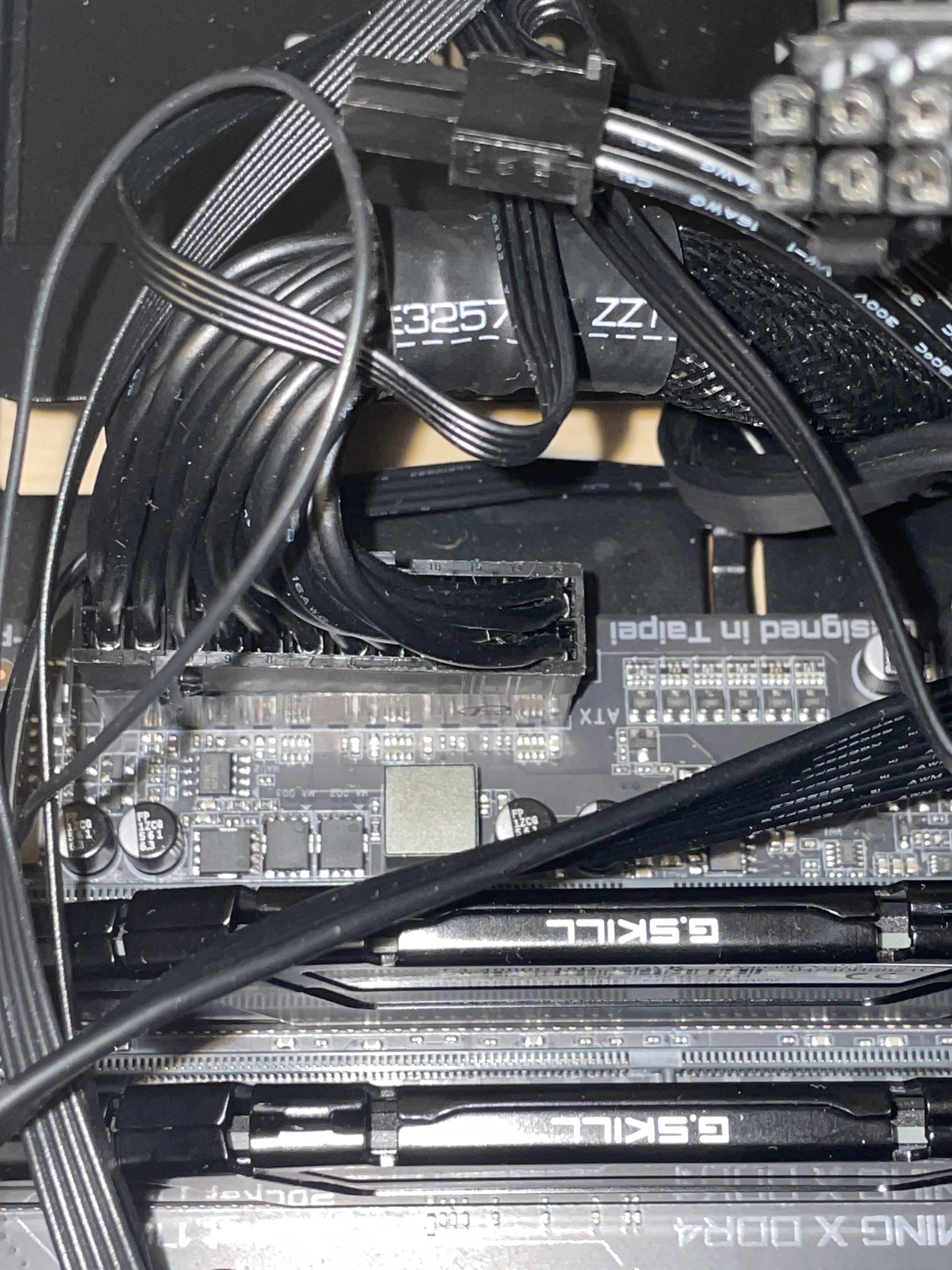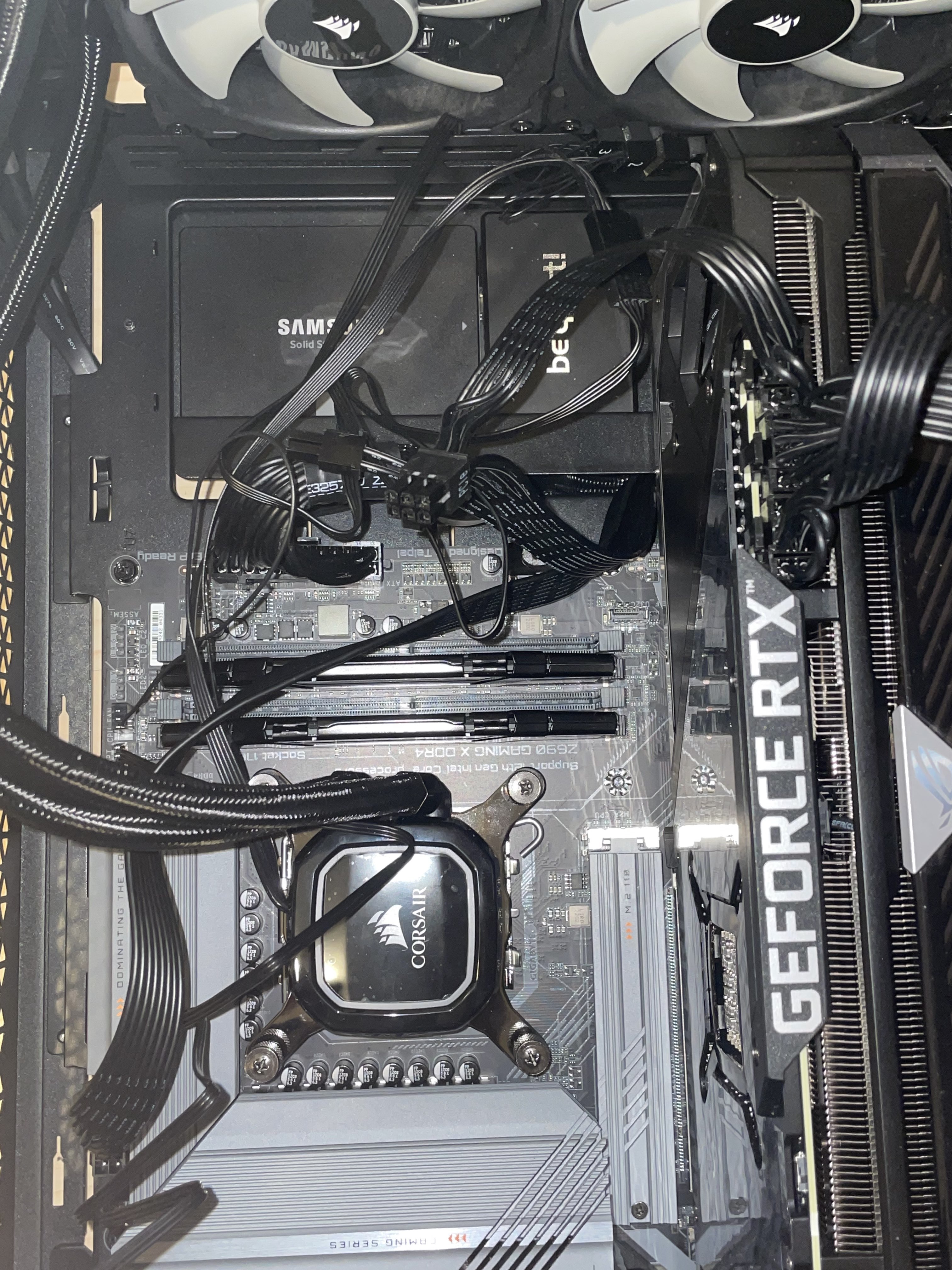Es kommt kein Bild und ansonsten läuft alles, lüfter , led, wasserkühlung, gpu und cpu. (Mainboard bin ich mir nicht sicher)