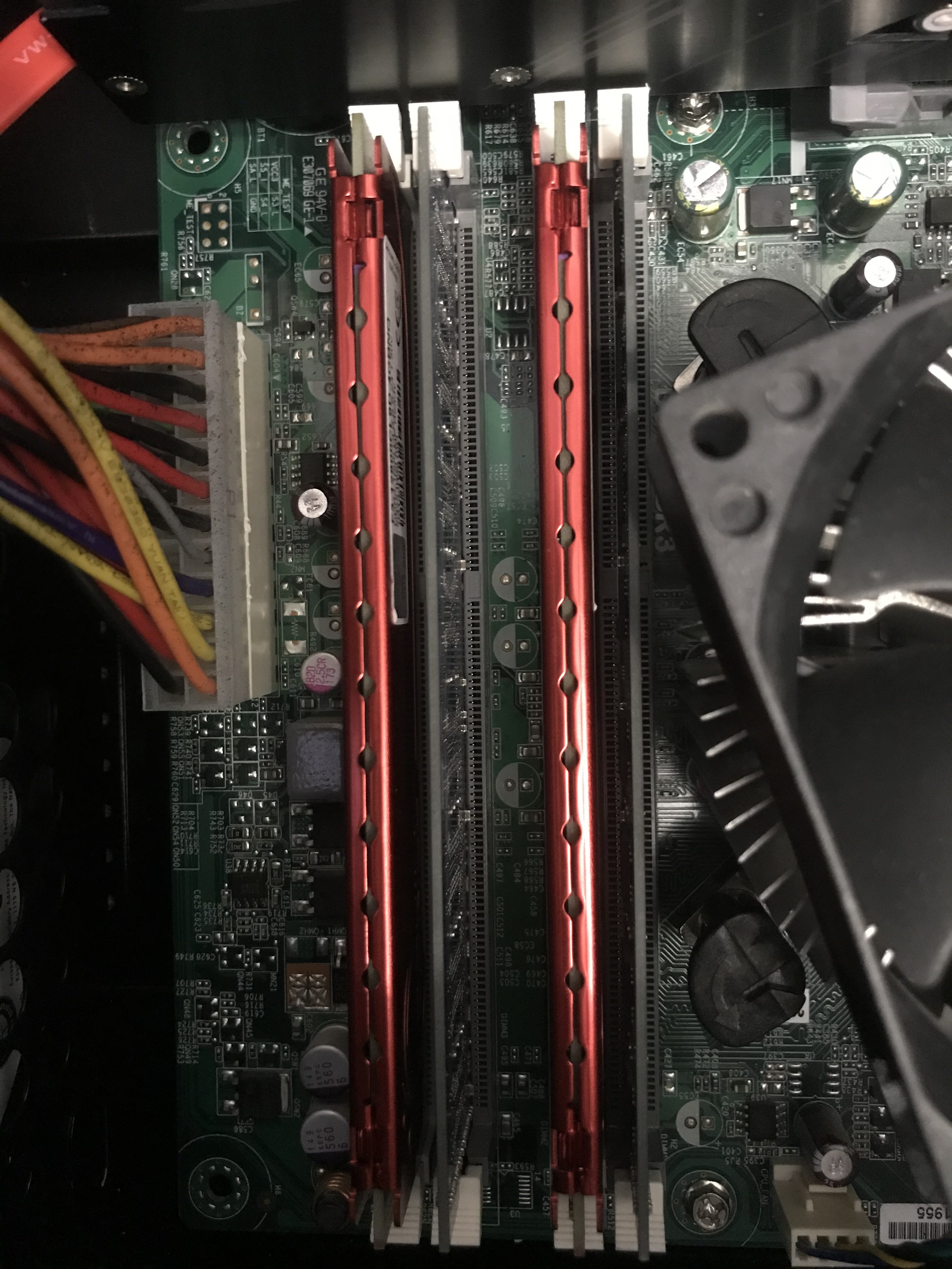 Außerdem sieht man, dass du die äußeren Mainboardschrauben gar nicht nutz und dort vermutlich auch die Abstandshalter nicht installiert hast. Wird auch ohne gehen, ist kein Beinbruch, aber ich hätte den Anspruch, alle vorgesehenen Schrauben zu nutzen.