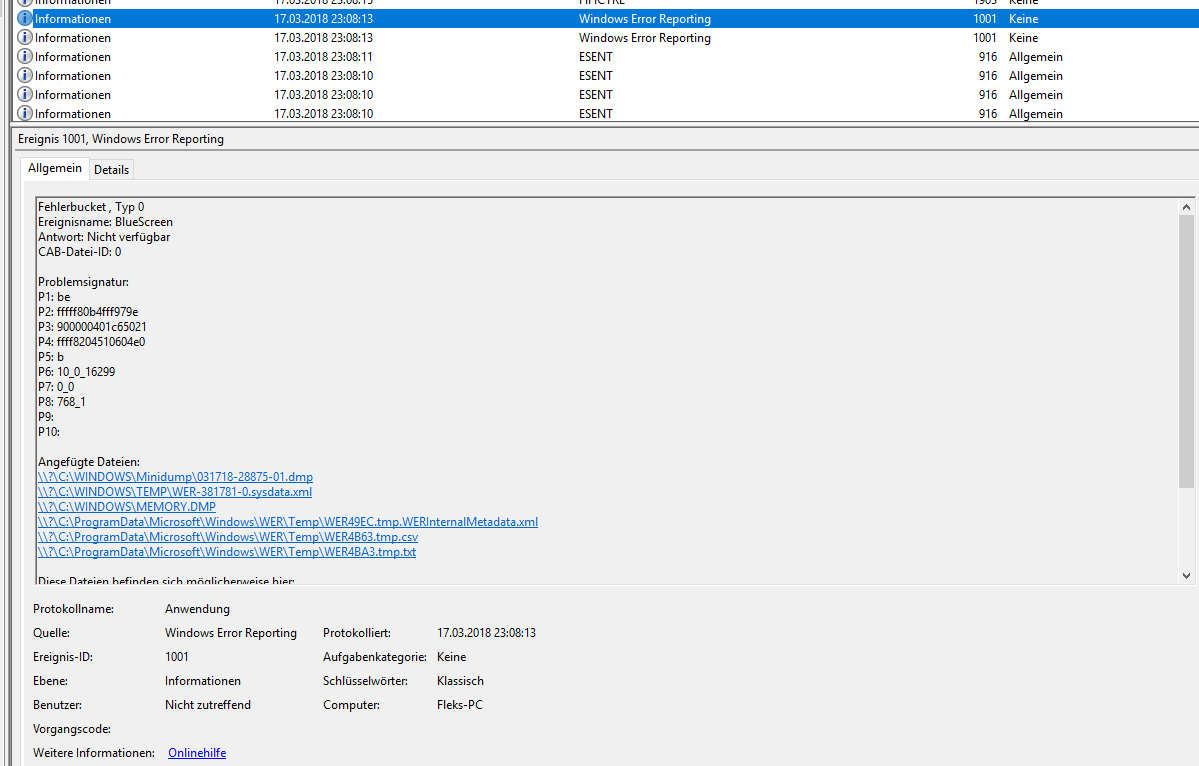 aber das ganze deutet wohl auf ram fehler -> bluescreen hin würde ich tippen?