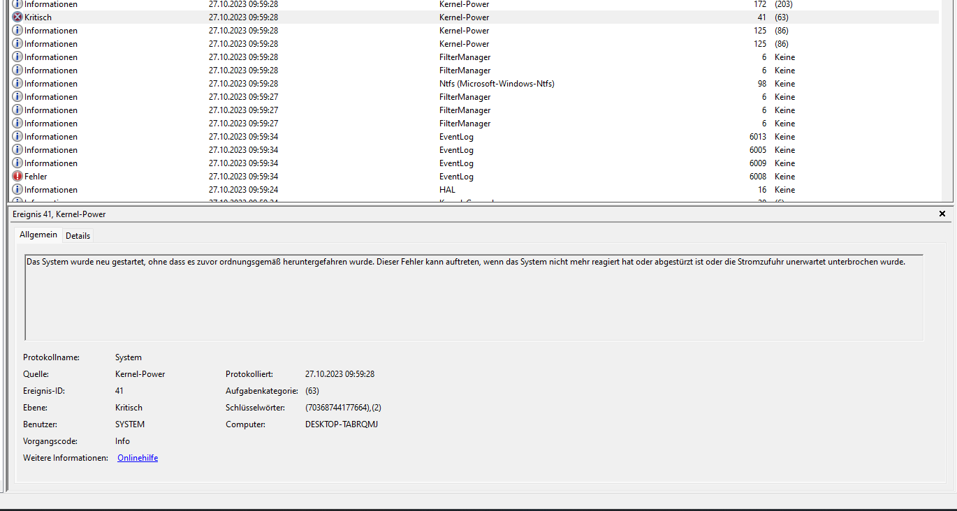 Wenn ich z.b. ein Spiel spiele egal ob Battlefield 2042 oder Cities Skylines 2 der Pc geht aus mit Blackscreen also kein BSOD nichts er ist einfach aus Ram Riegel leuchten noch. Praktisch wie einen Stromausfall.