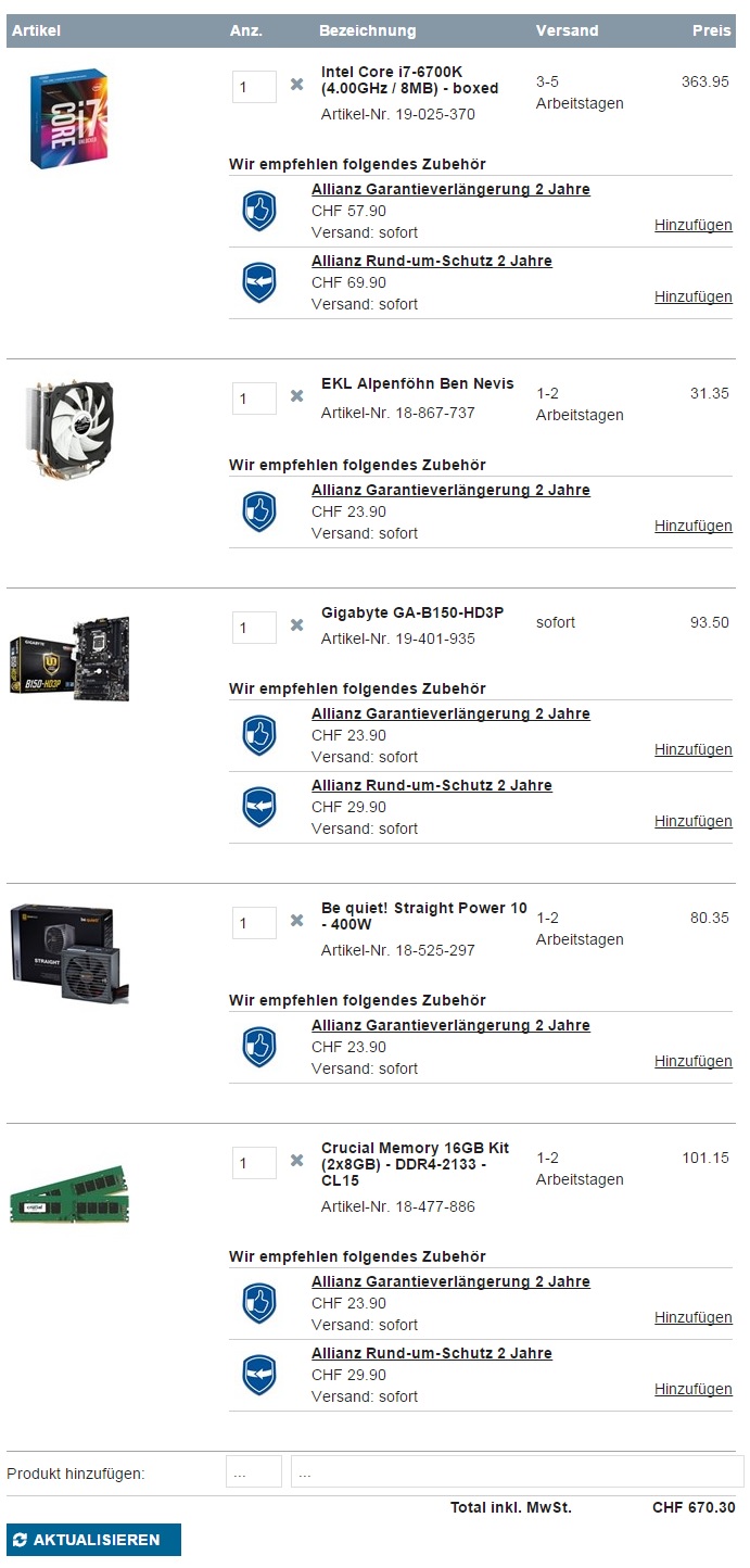 Ich kann dazu gerne noch das Netzteil, Mainboard u.Ä. nachführen wenn benötigt.