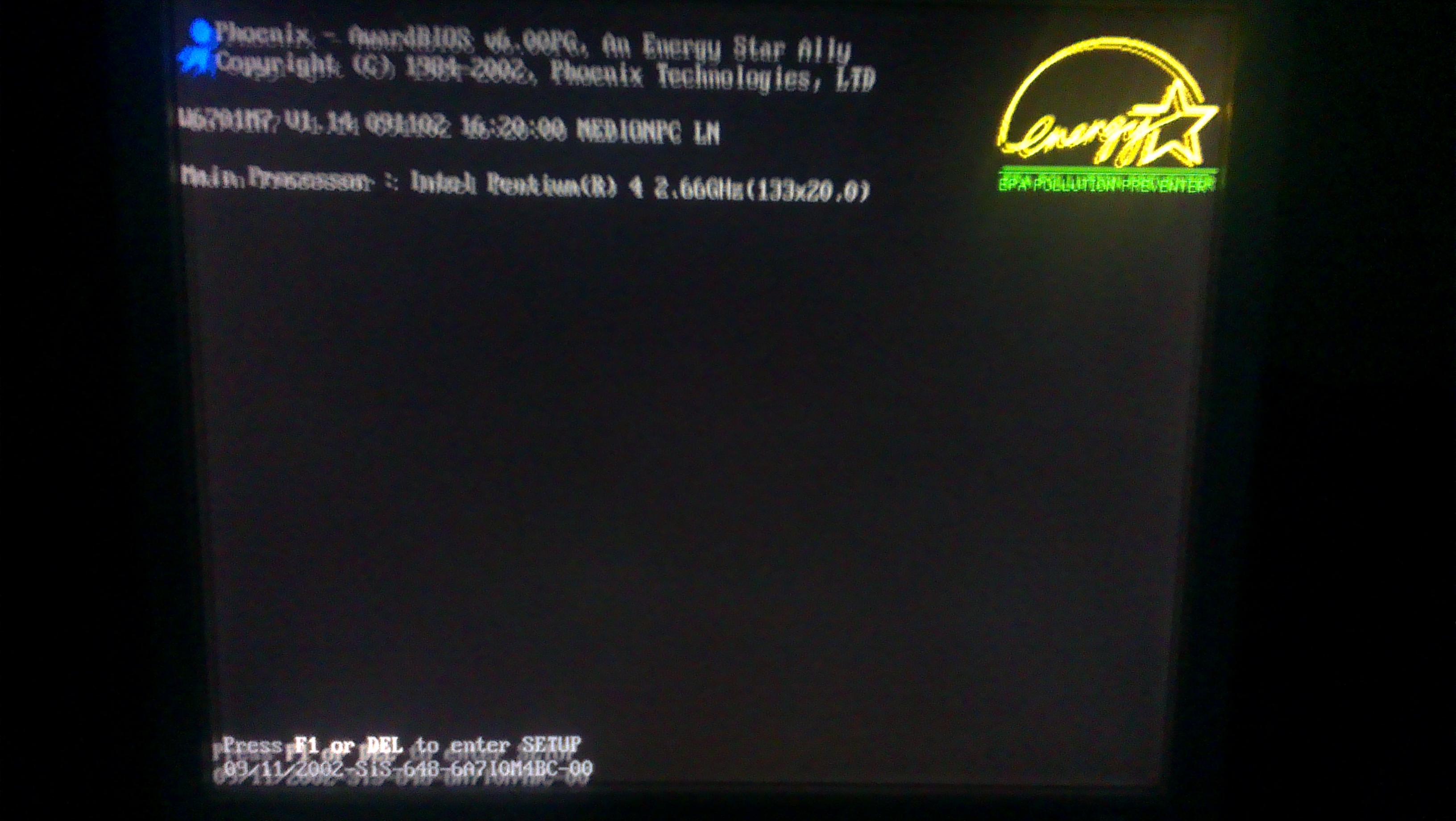 => Zieh mal die Festplatte (und andere Laufwerke) ab. Wenn der Rechner dann ein Bild weiterspringt (aber natürlich ohne Platte/Laufwerke nicht bootet), dann lags daran.